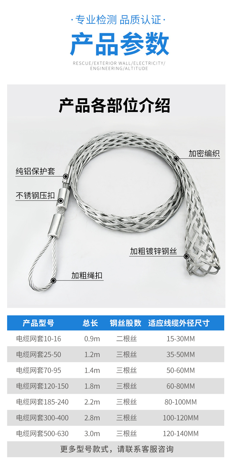 厂家批发电力网罩牵引镀锌钢丝绳导线中间电信施工电缆拉线网套