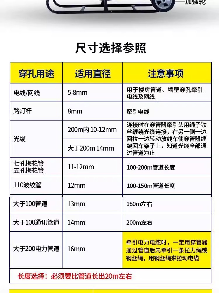 电缆穿管器玻璃钢穿线器电工下线引线穿孔器管道放线器光缆穿线器