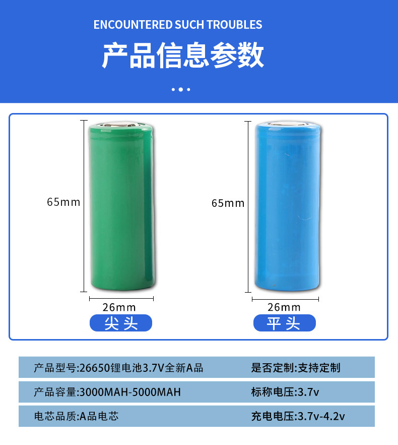 - 规格:26650-5000平头