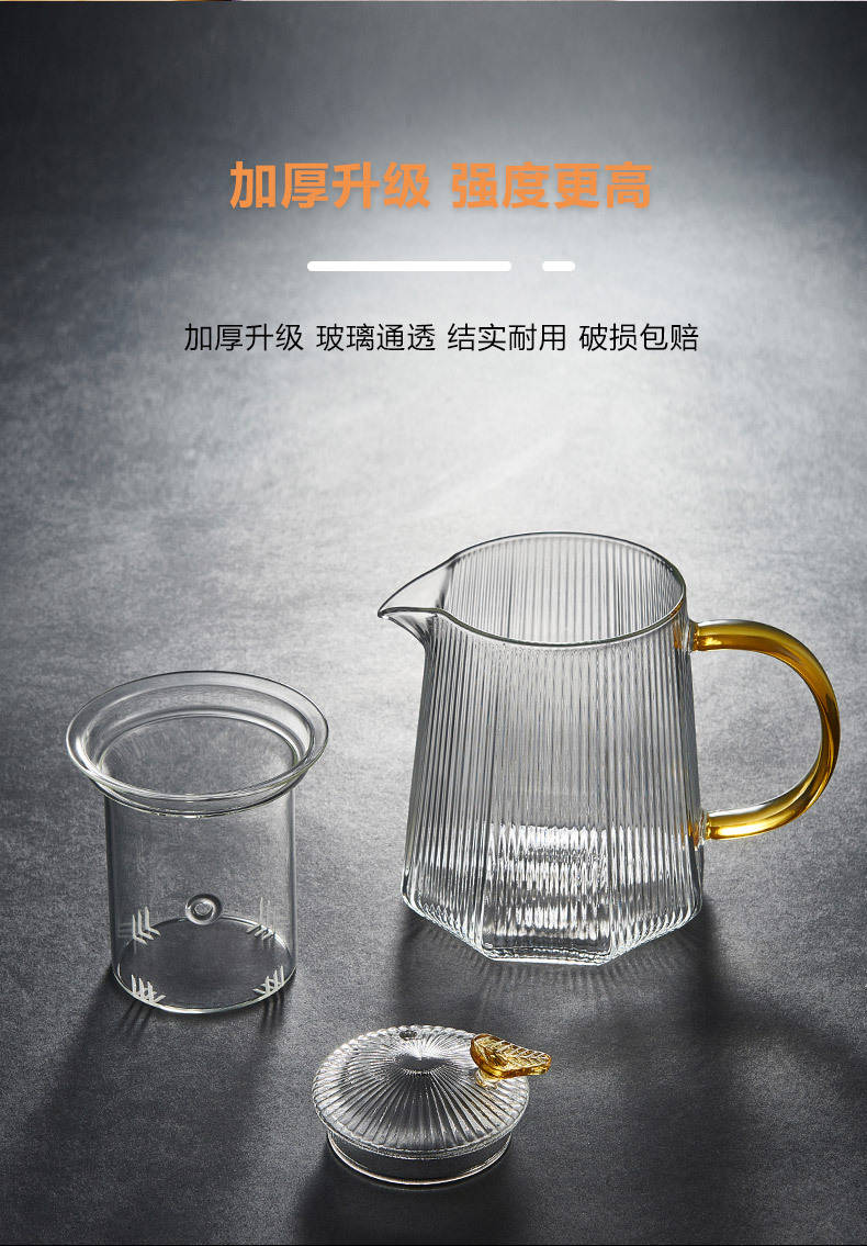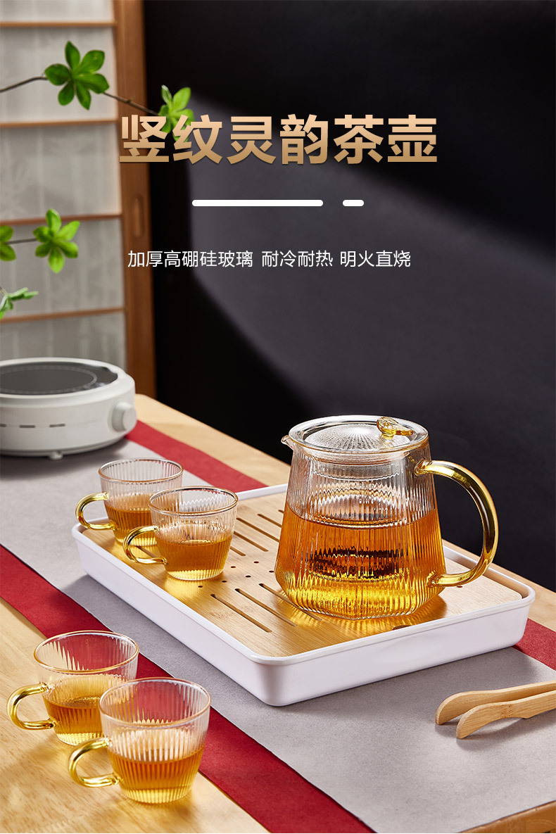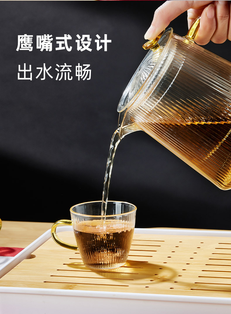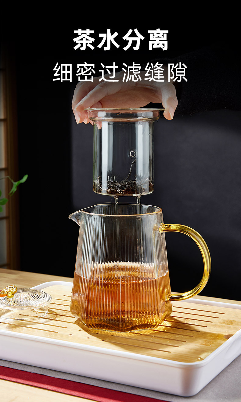家用茶水分离竖纹茶壶电陶炉煮花茶具套装玻璃泡茶壶过滤八角壶