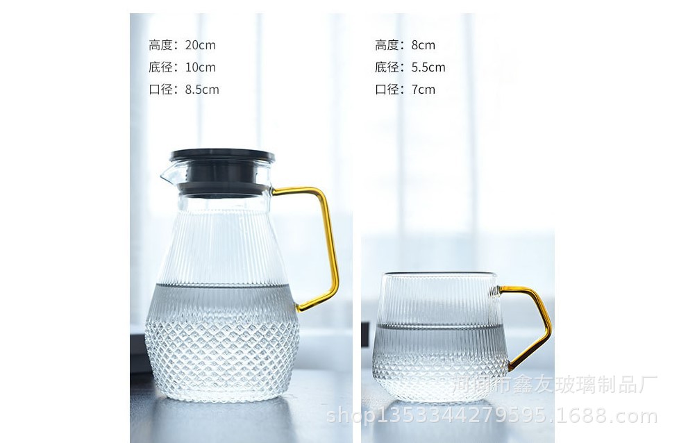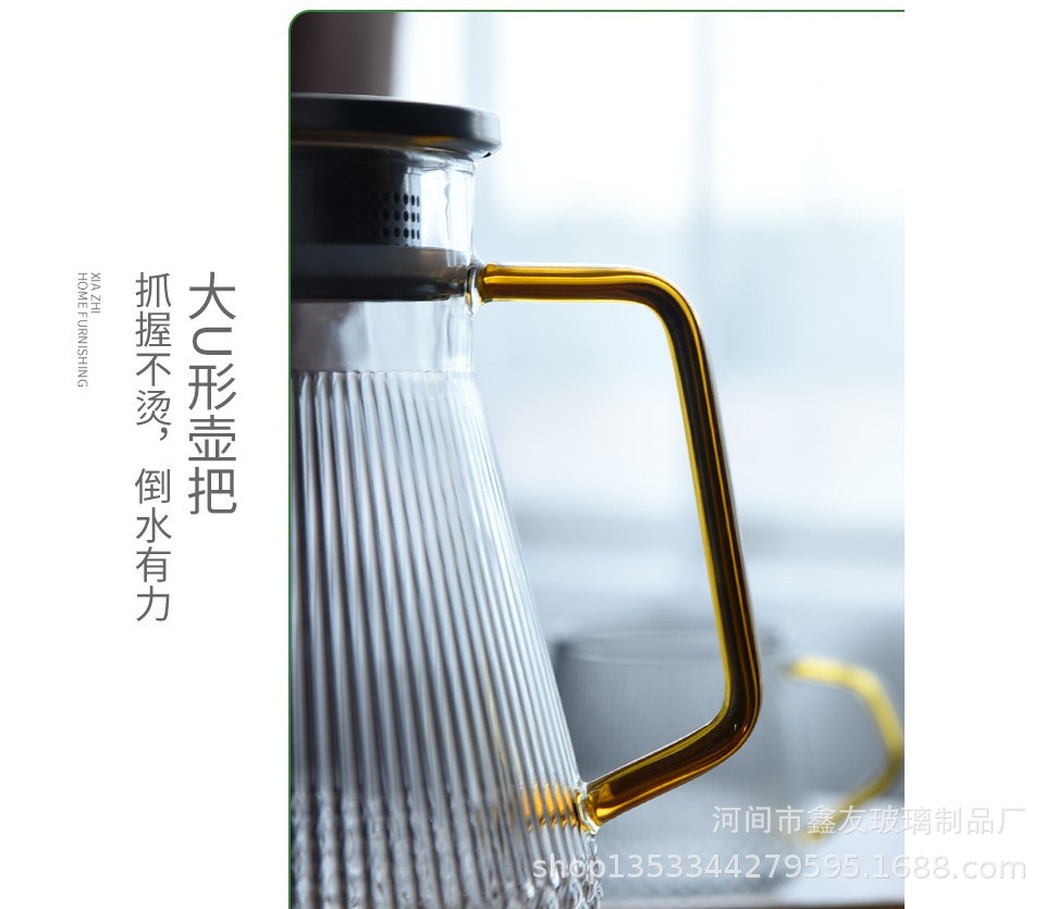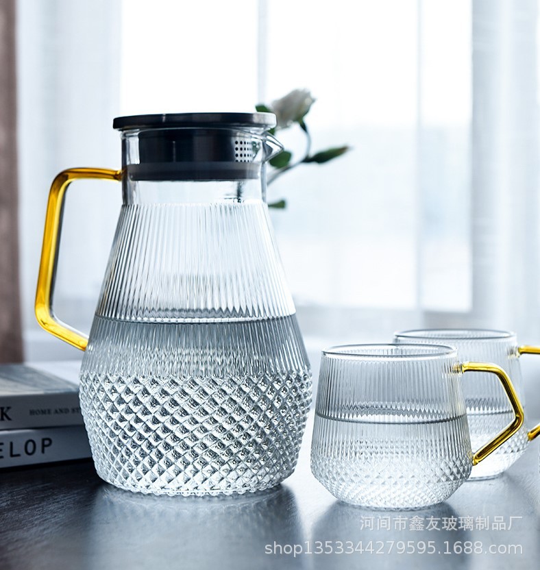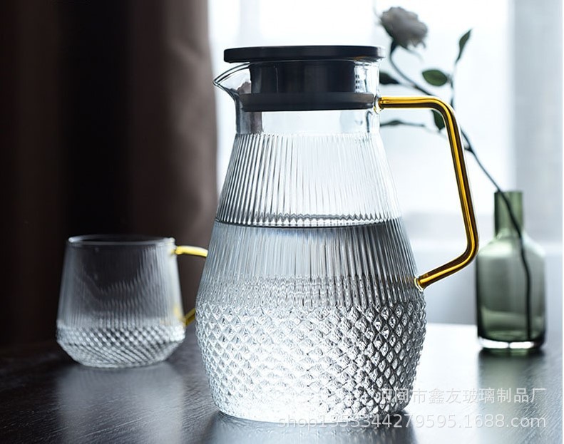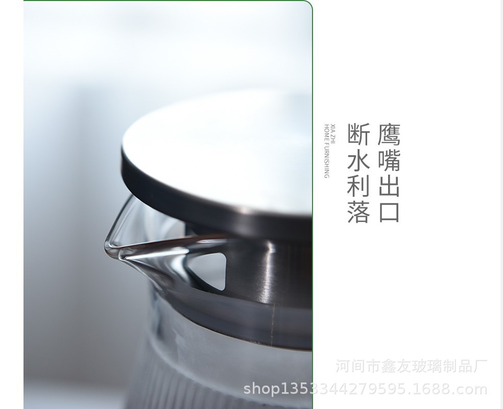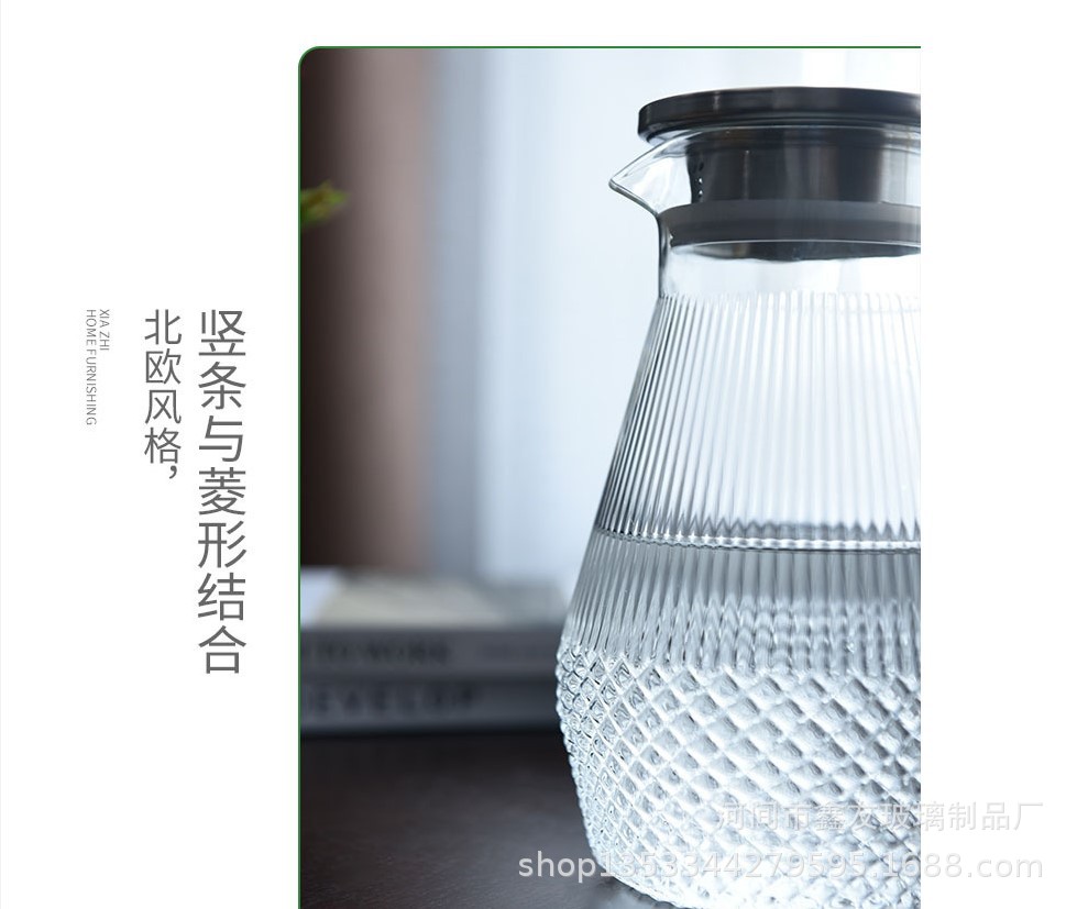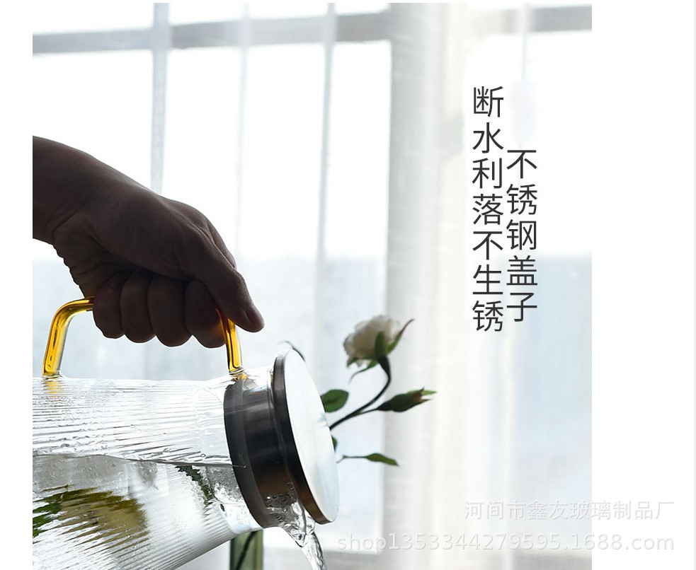 厂家批发半夏高硼硅玻璃家用大容量凉水壶竖纹不锈钢盖果汁冷水壶