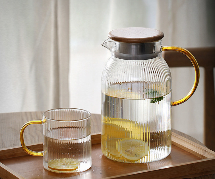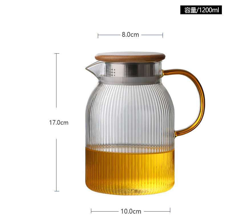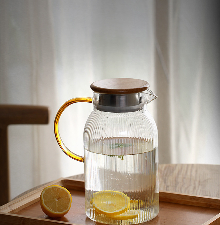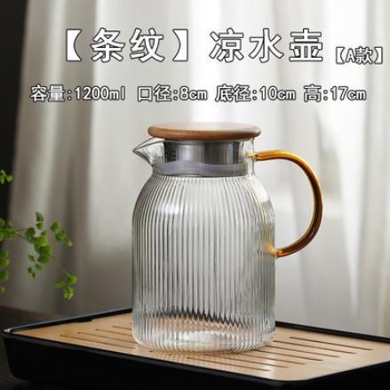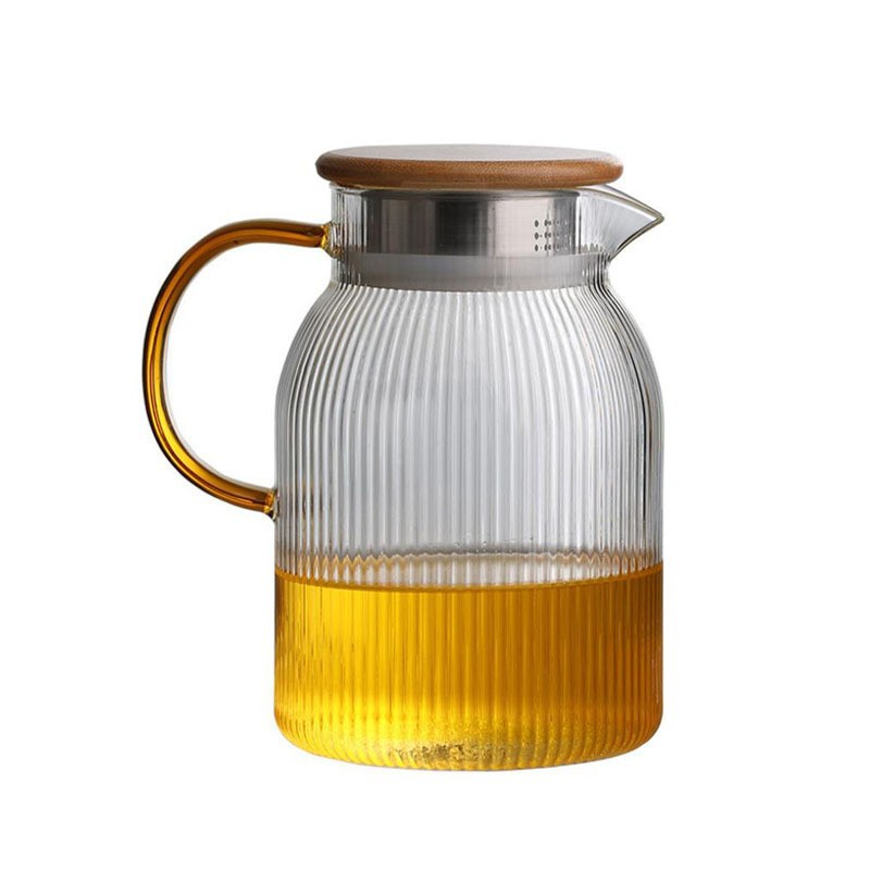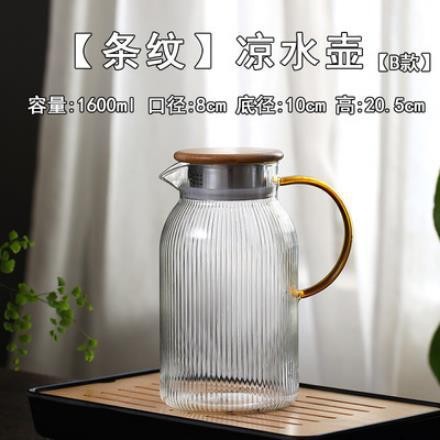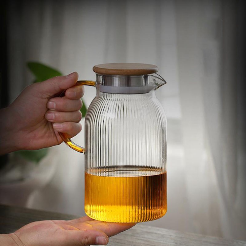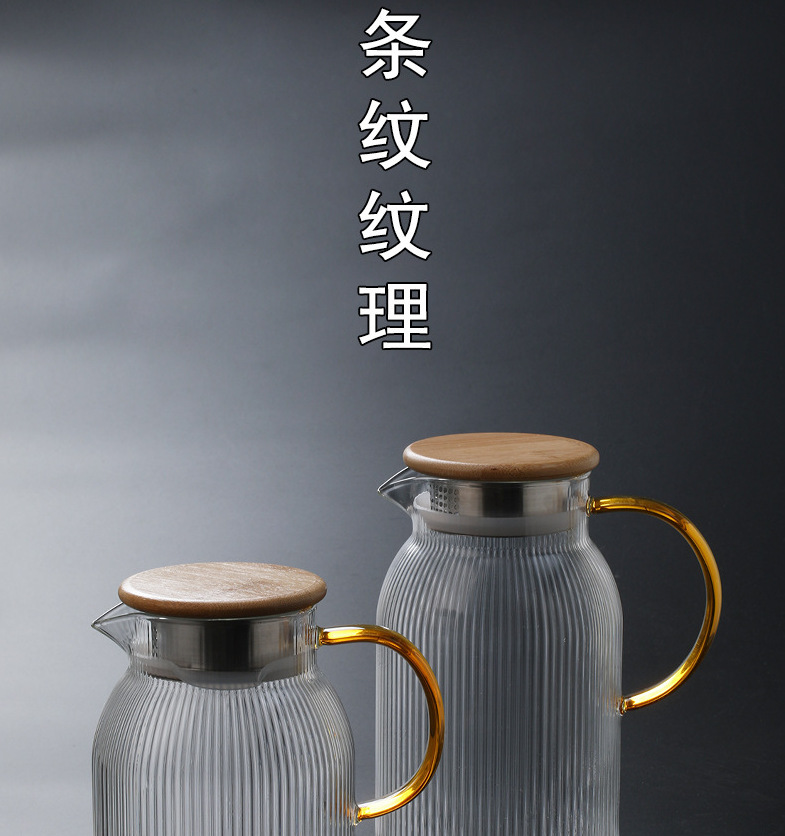 高硼硅玻璃竖纹冷水壶家用大容量果汁壶竹包钢盖子果汁壶凉水壶