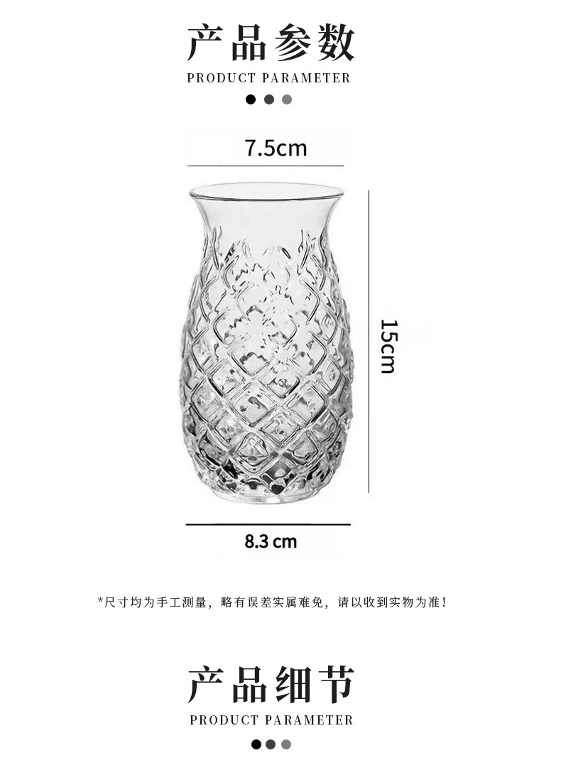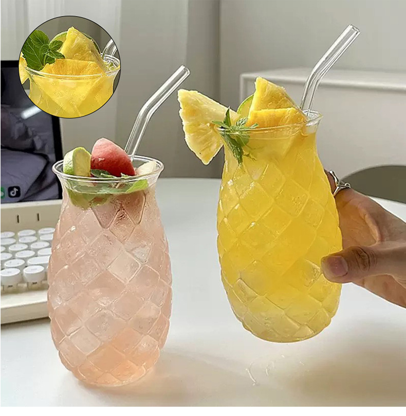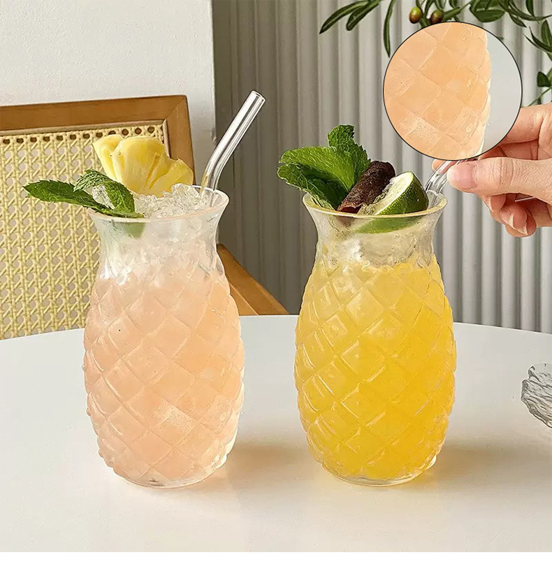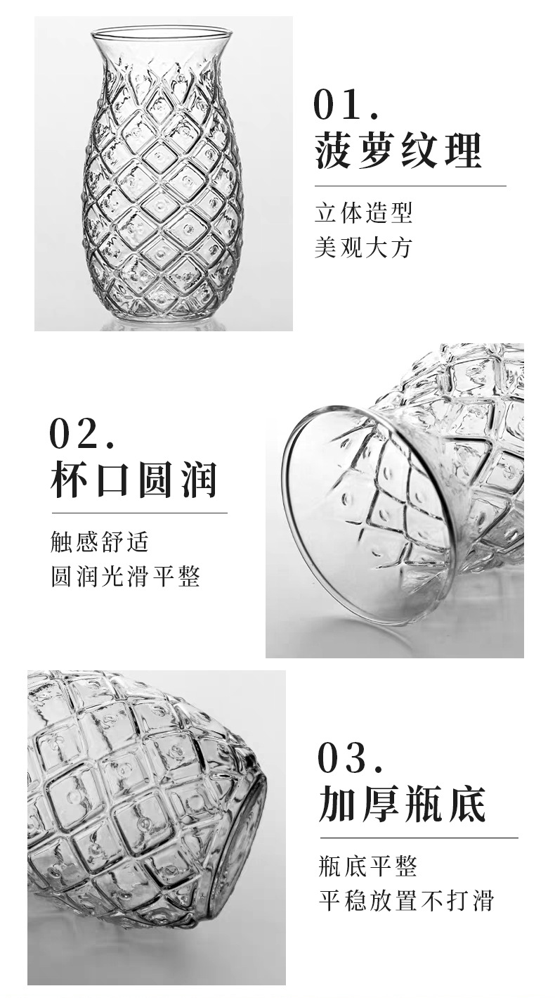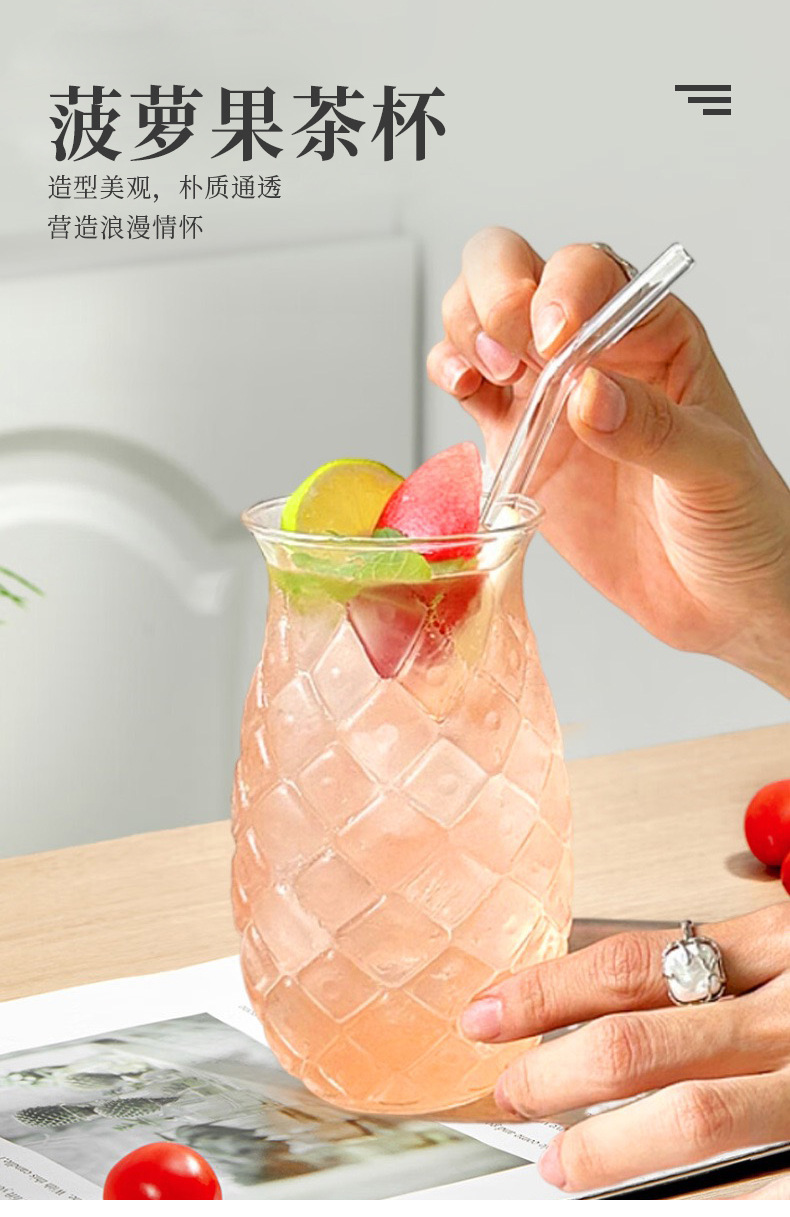 网红菠萝杯鸡尾酒杯 ins风创意浮雕玻璃杯饮料杯水杯菠萝果汁杯
