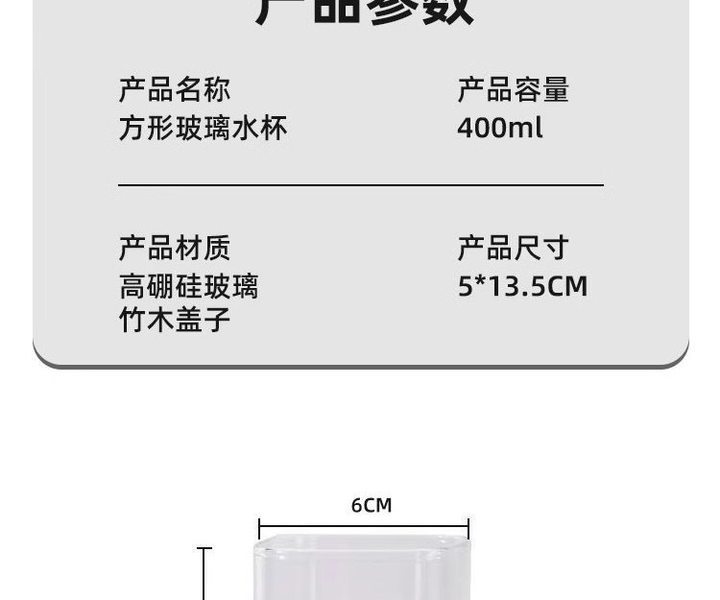 - 颜色:400ml竹盖方杯珍珠棉包装