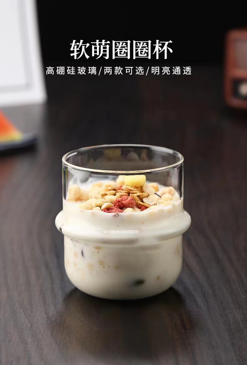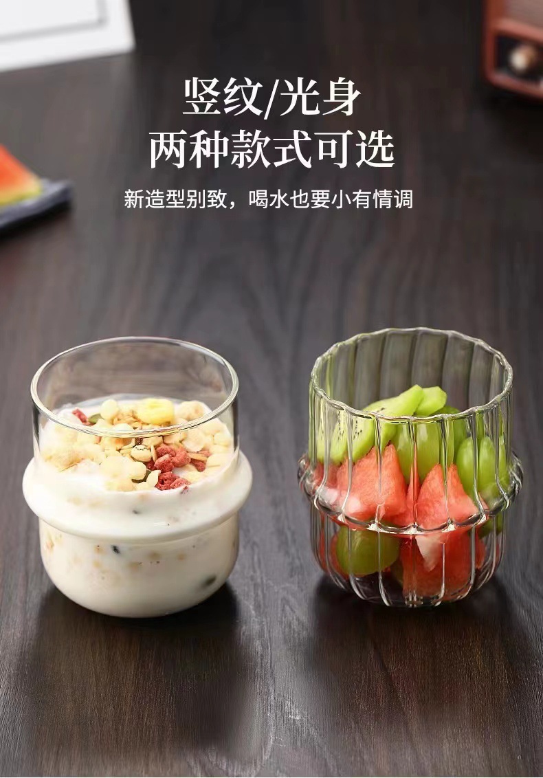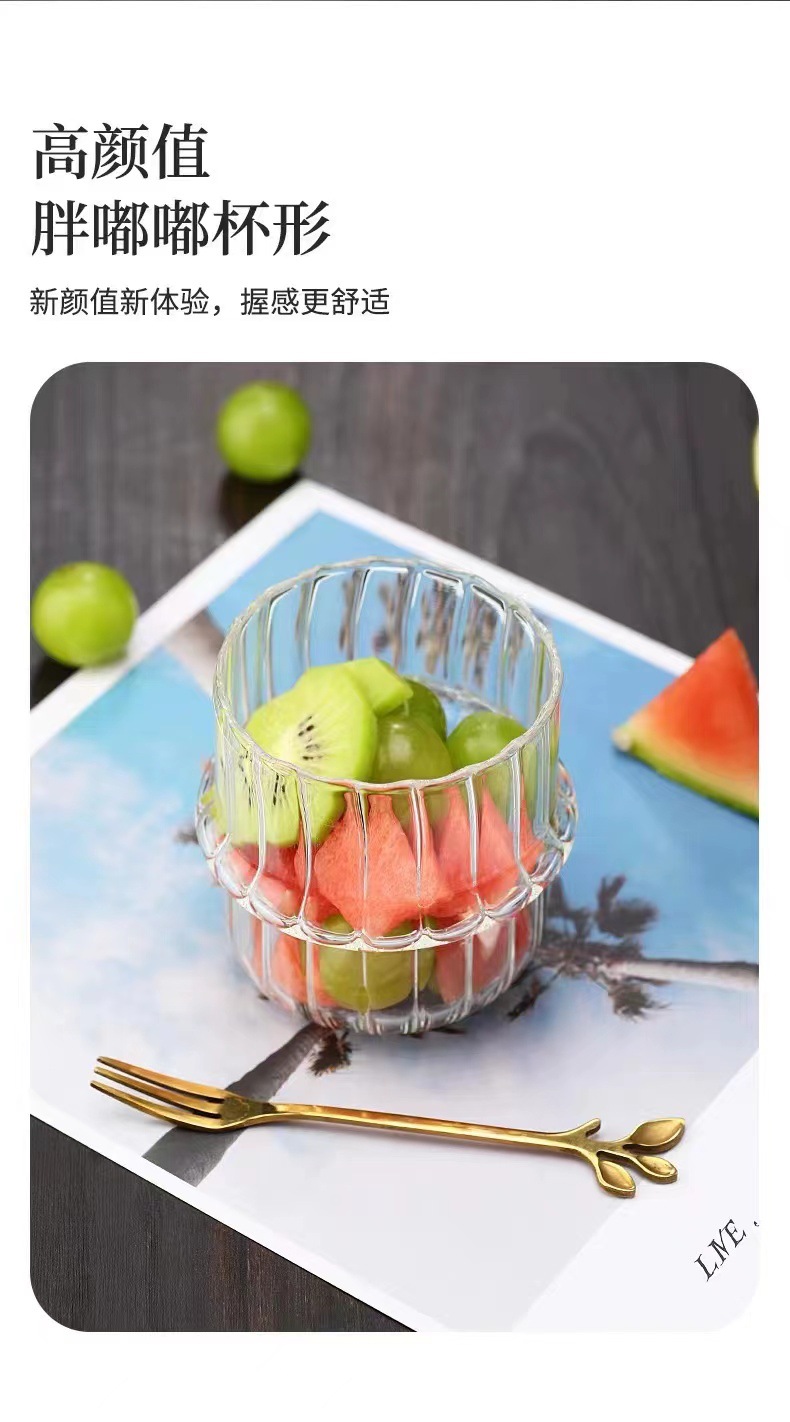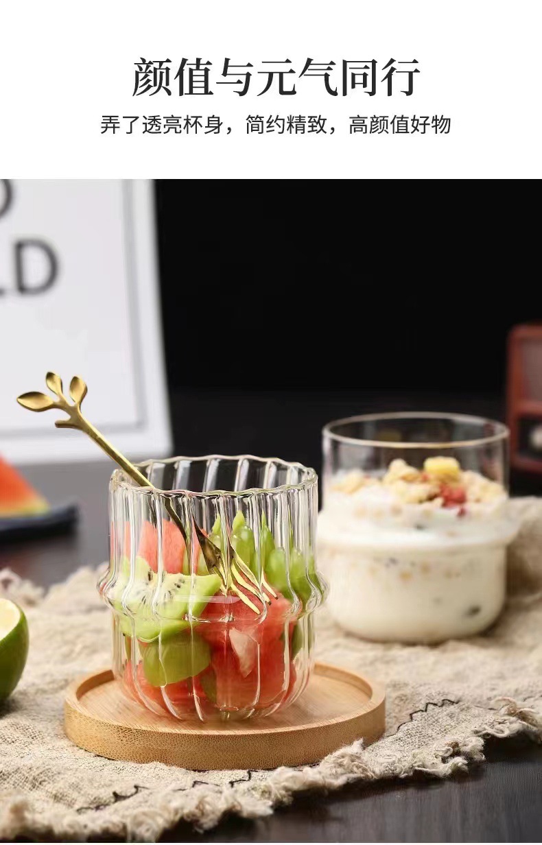 ins可爱条纹高硼硅家用牛奶燕麦创意早餐玻璃杯 复古草帽单层杯