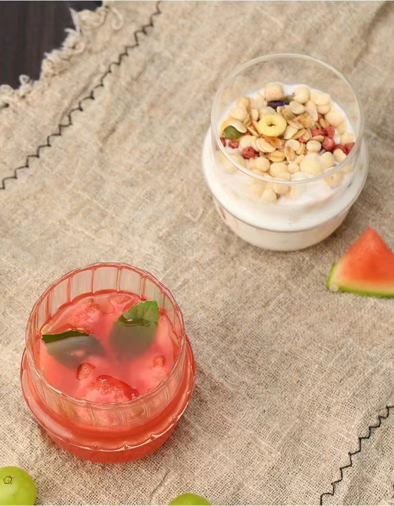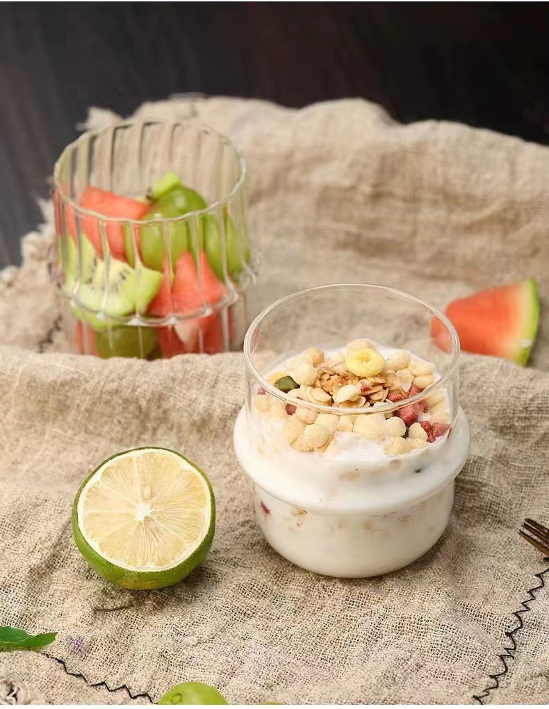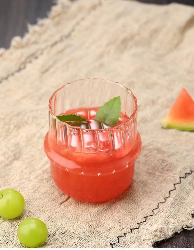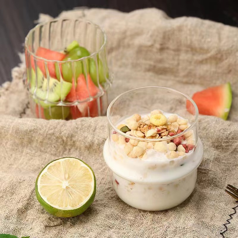 ins可爱条纹高硼硅家用牛奶燕麦创意早餐玻璃杯 复古草帽单层杯