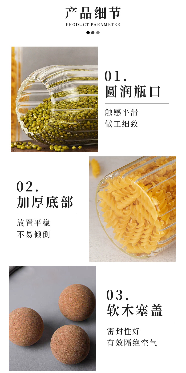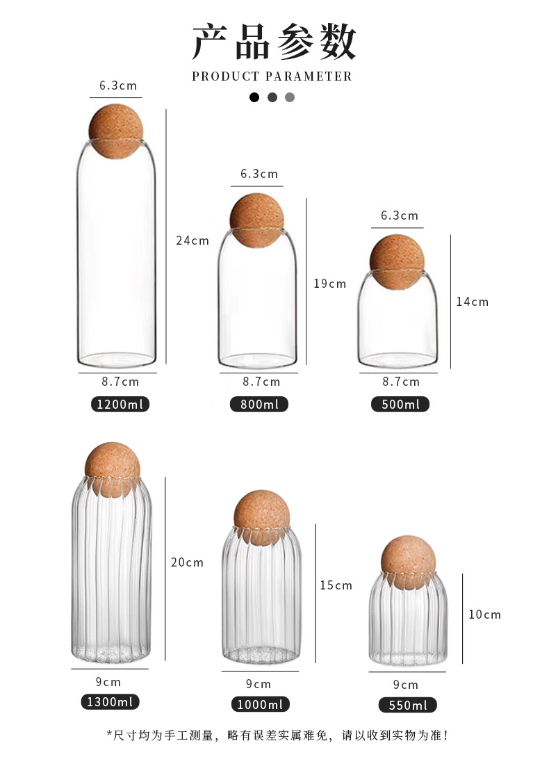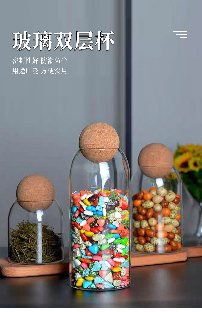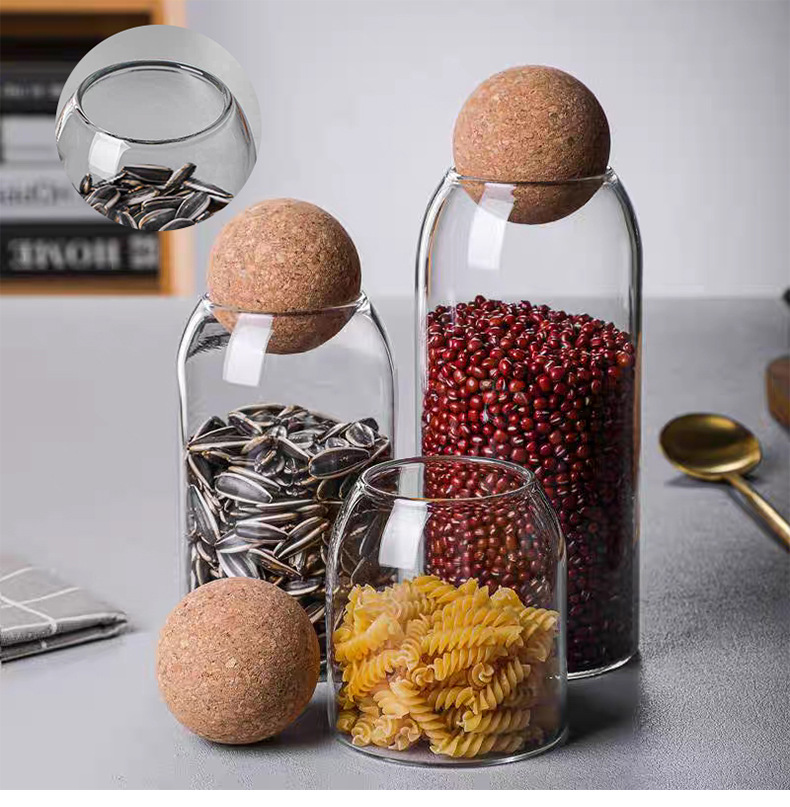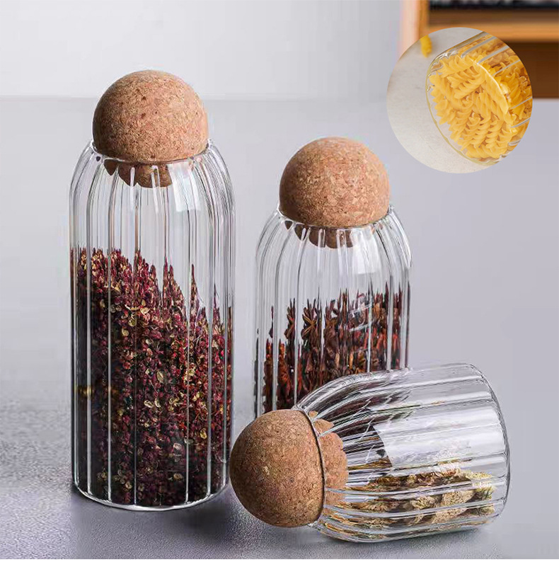 厂家批发竖纹圆球软木塞高硼硅玻璃密封罐咖啡罐子带盖储物罐茶叶