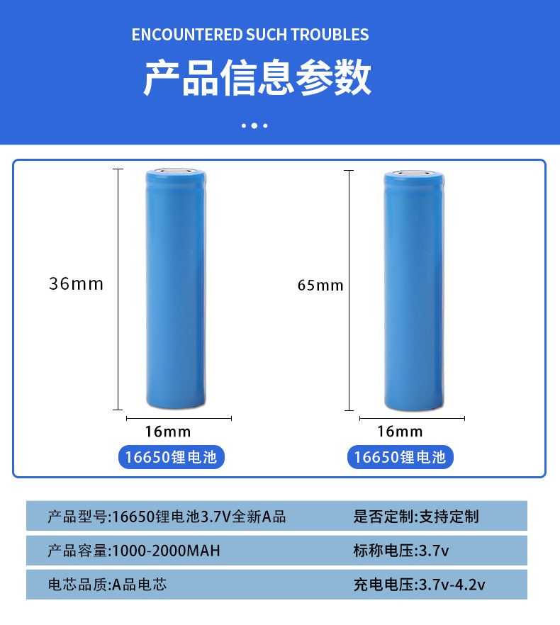 全新A品16650锂电池 3.7V2000mAh充电电池组 多规格大容量锂电池