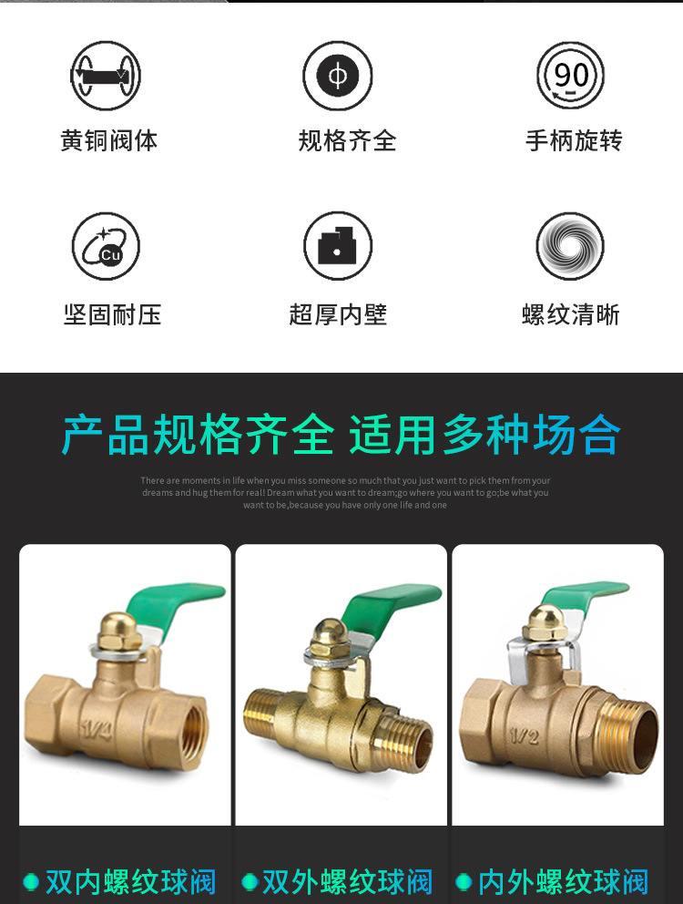空压机气动球阀开关阀门4分水阀全铜6自来水管铜球阀加厚2分DN20