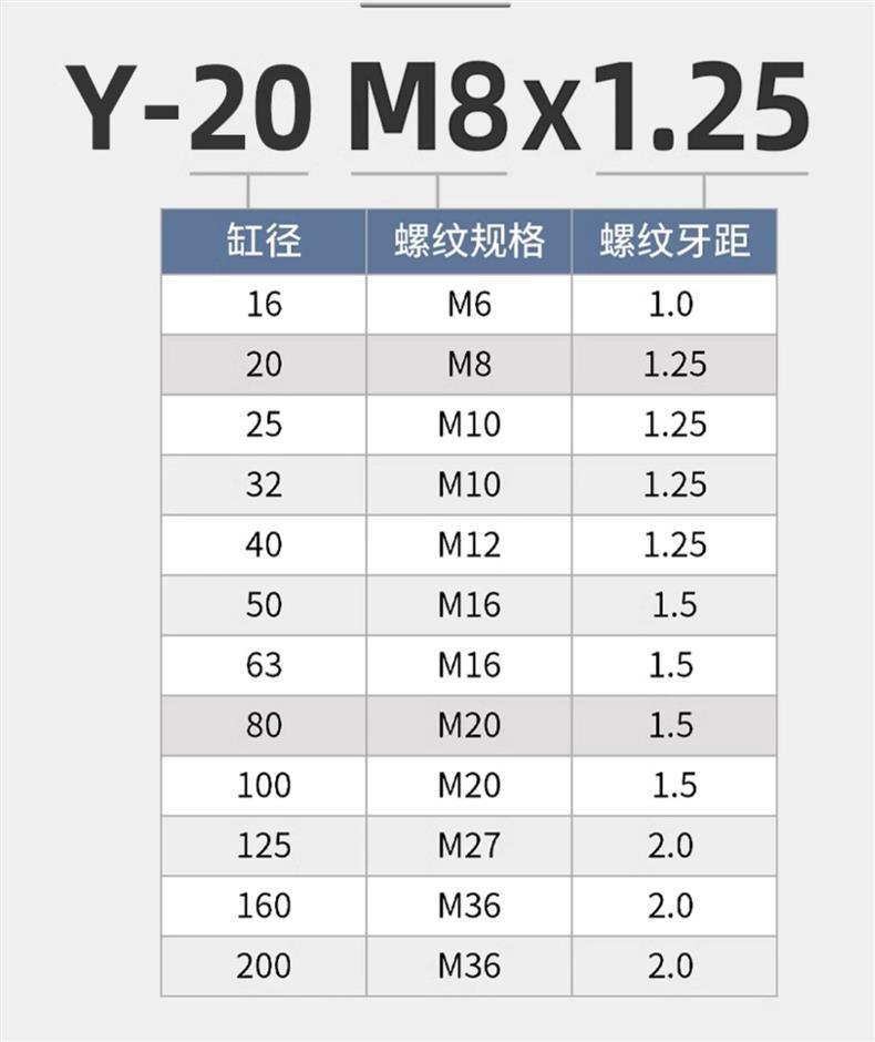 - 规格:Y-20(M8*1.25)