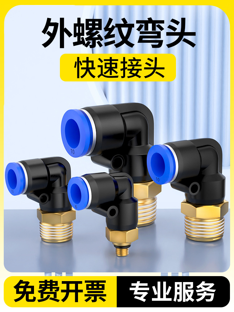 气管快速接头气动快插90度外丝弯头带螺纹直角气泵配件PL4/6/8-02