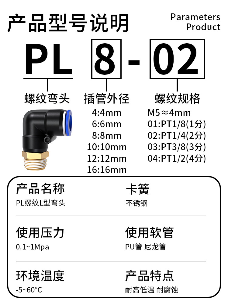 - 型号:L型弯头(1分外丝*8mm管)*10个