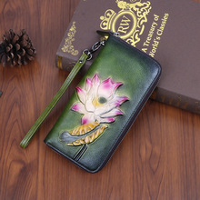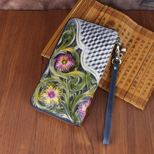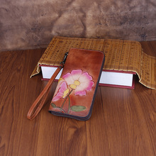 2023新款头层牛皮钱包手工皮雕长款包复古手拿包头层牛皮女士钱包
