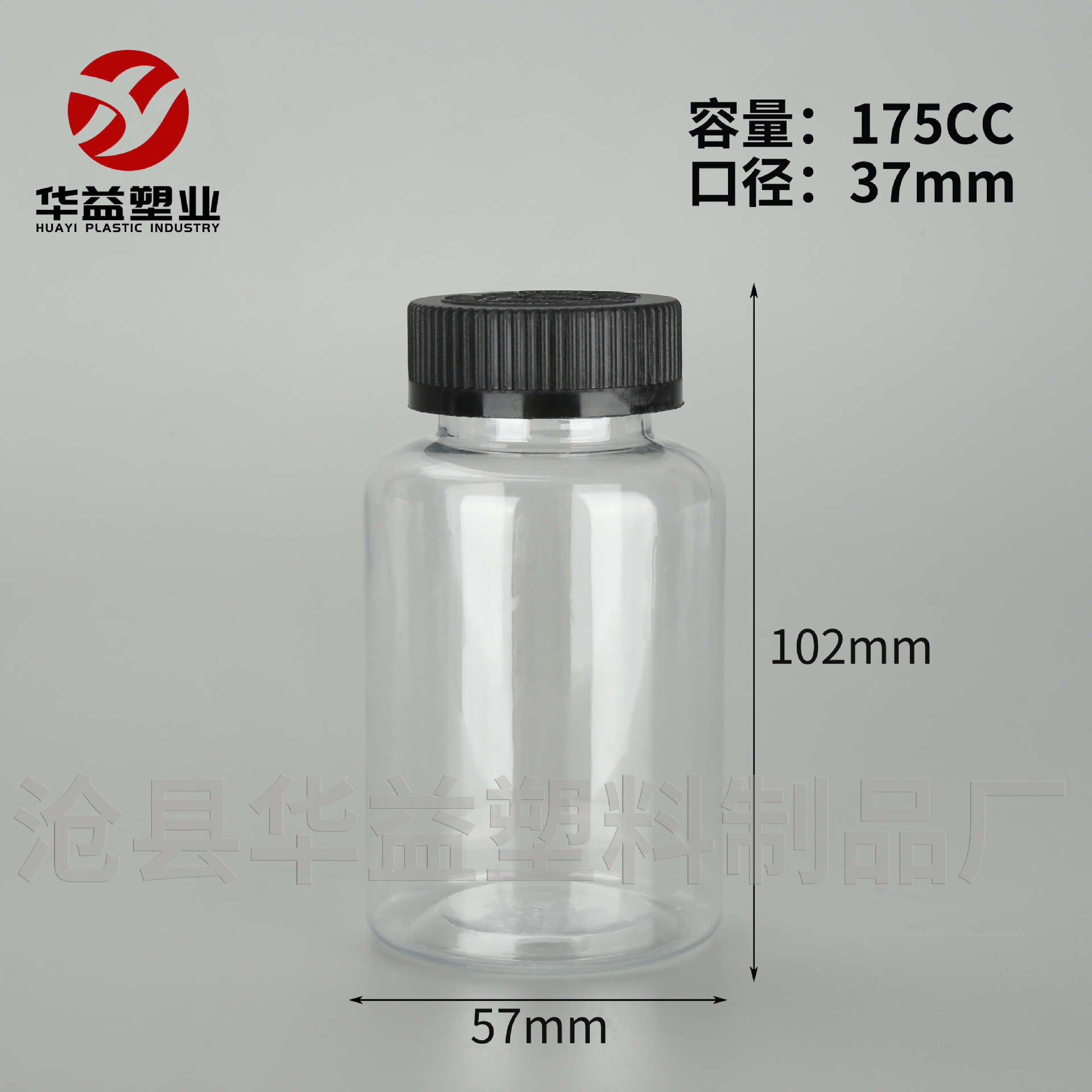 黑盖透明塑料瓶加厚密封175ml透明塑料瓶液体固体样品片剂塑料瓶