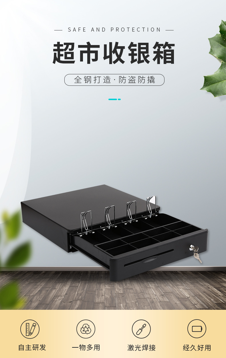 收银机钱箱商场超市餐饮奶茶钱箱Q235B钢板钱箱收钱箱批发