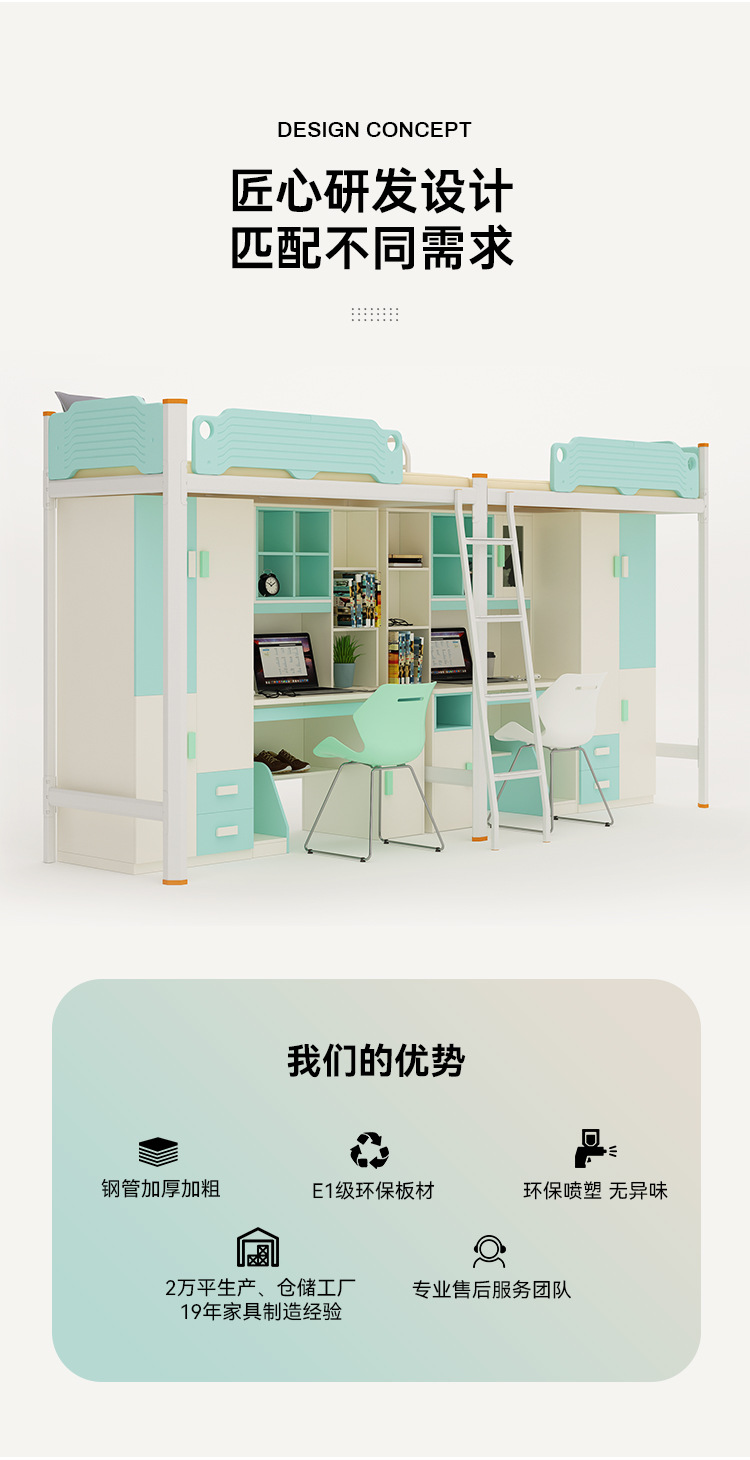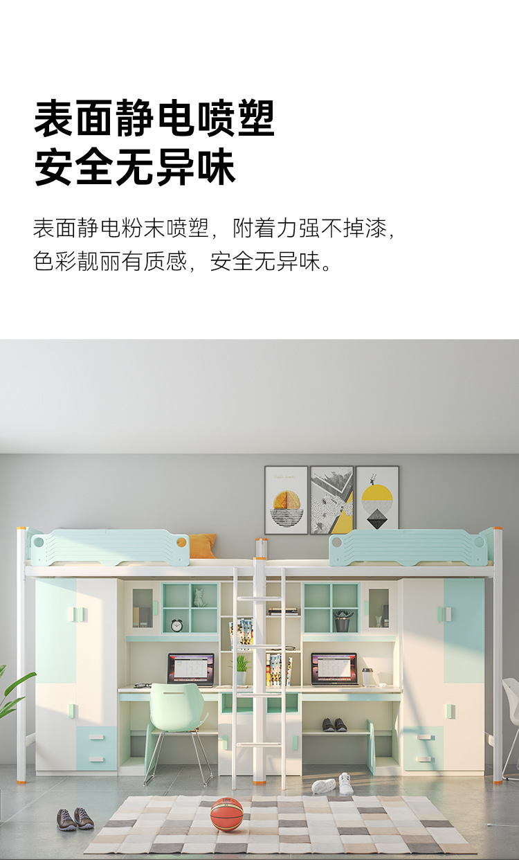 厂家供应大学生连体公寓床双人家用高低床学校宿舍上床下桌上下铺