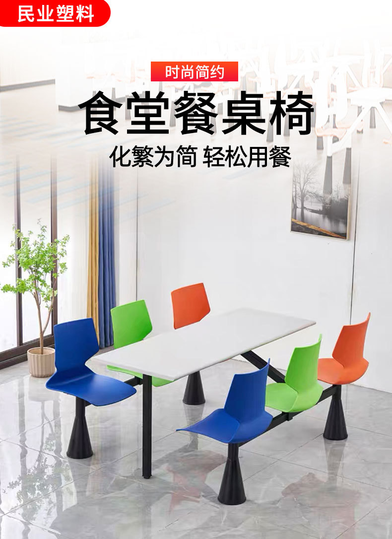 企业员工食堂餐桌椅 岩板桌子学校四人位连体餐桌椅组合靠背餐椅