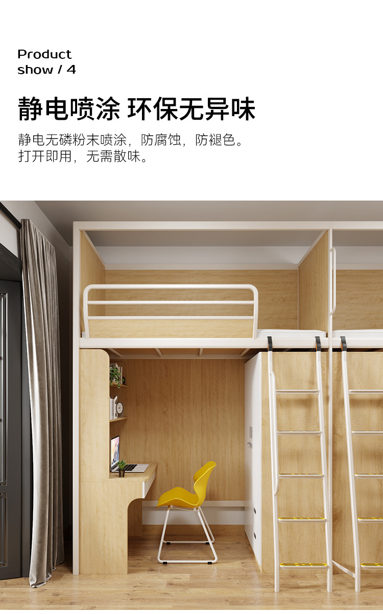 板材 铁艺床钢木床宿舍床公寓床上下铺高低床铁架床双层床太空舱实木床