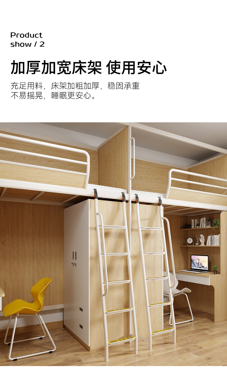 上床下桌组合床铁架床成年单人公寓床学生员工宿舍高架床书柜一体
