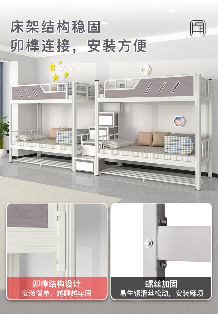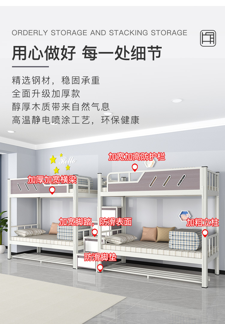上下铺钢制双人高低床员工宿舍加厚双层床公寓学校铁架成人型材床