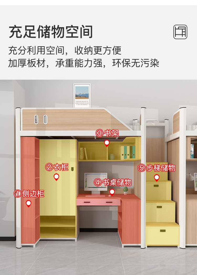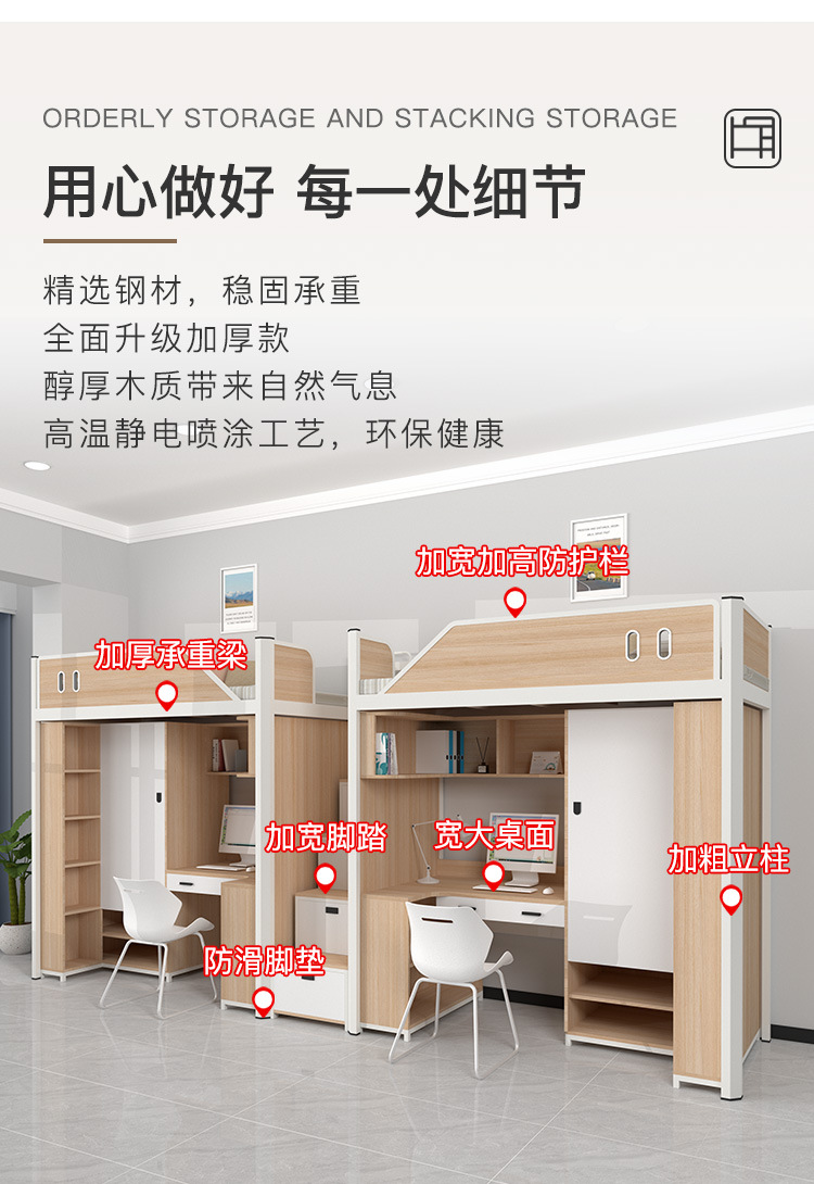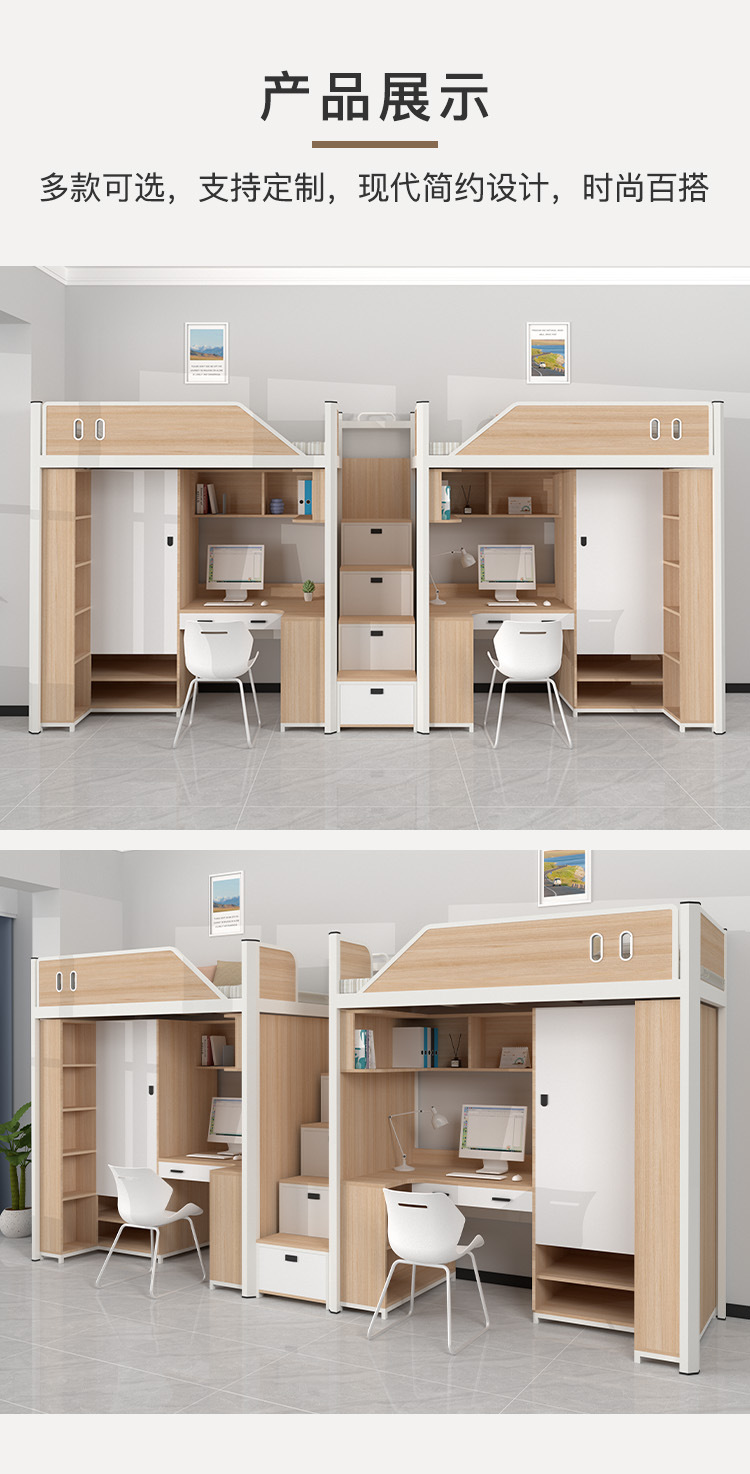 上床下桌组合床一体员工双层工人大学生宿舍床钢制高低学校公寓床