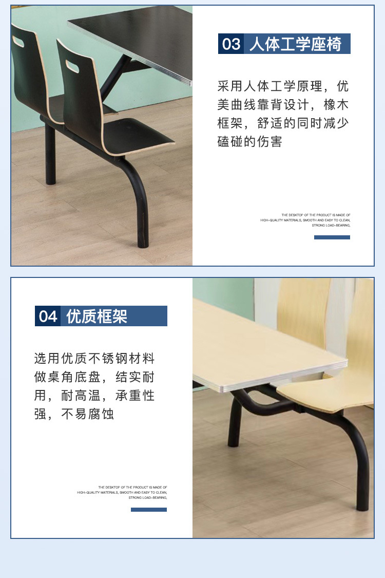 工厂公司餐桌椅组合食堂饭堂餐桌4人6人学校学生不锈钢连体餐桌椅