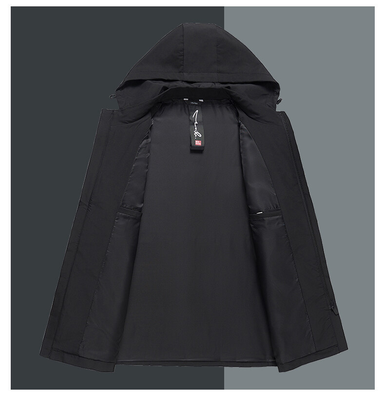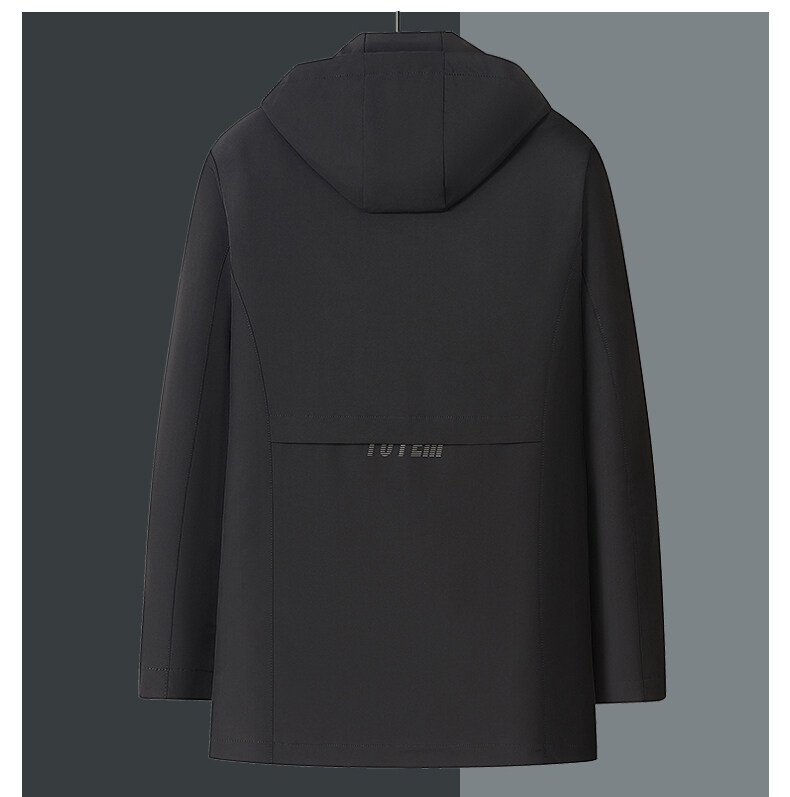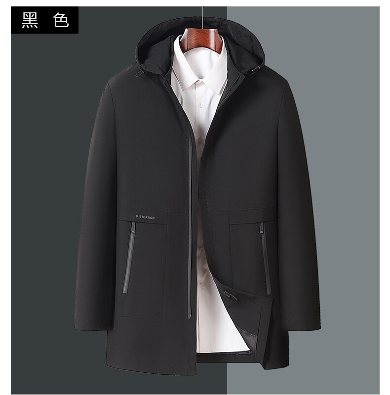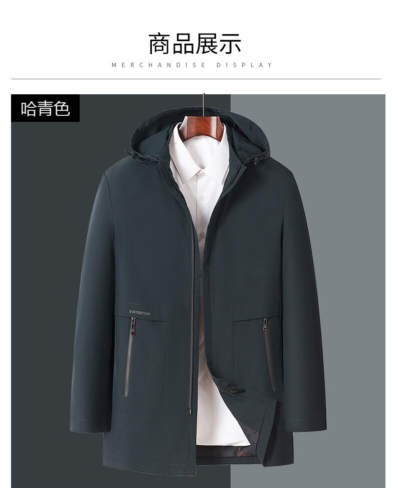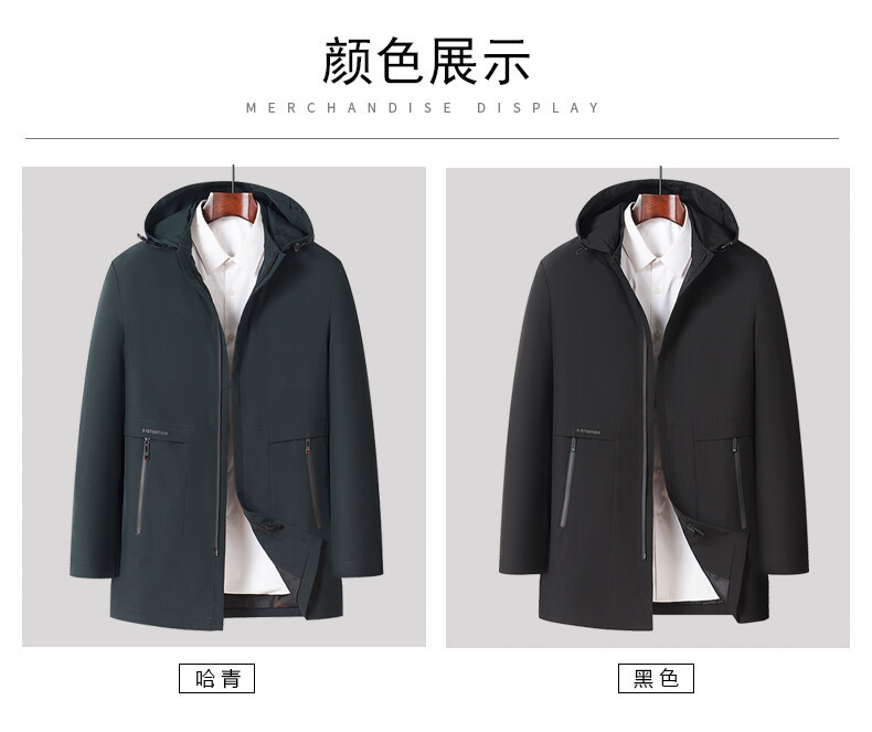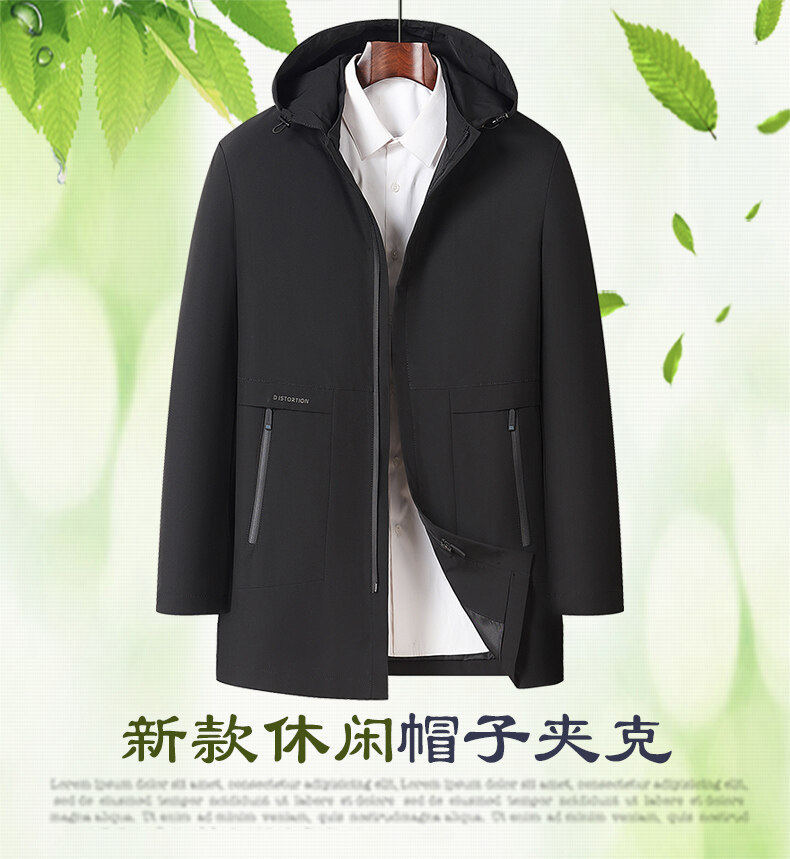 春秋款男士夹克商务休闲中长款连帽可脱卸拉链中年爸爸装夹克外套