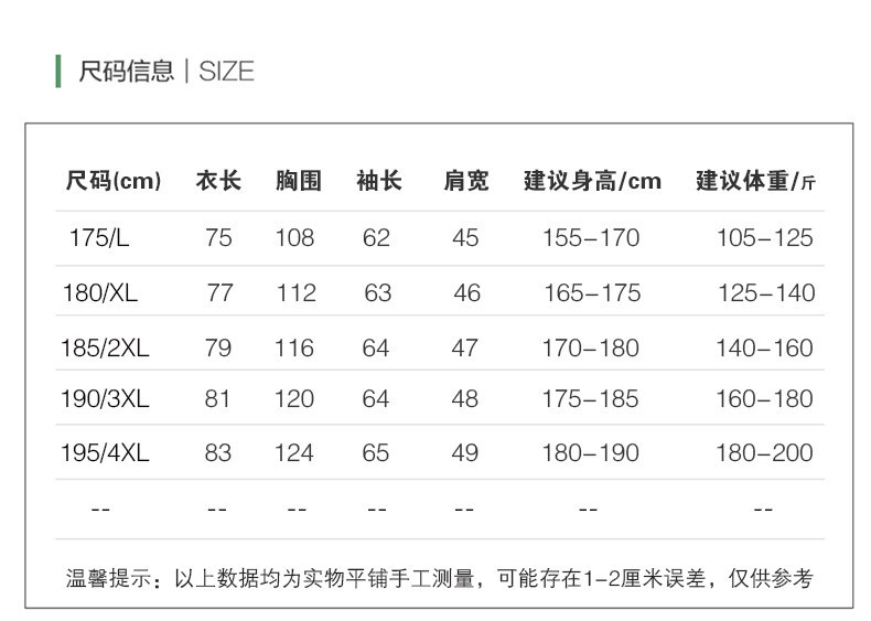 - 尺码:3XL/190