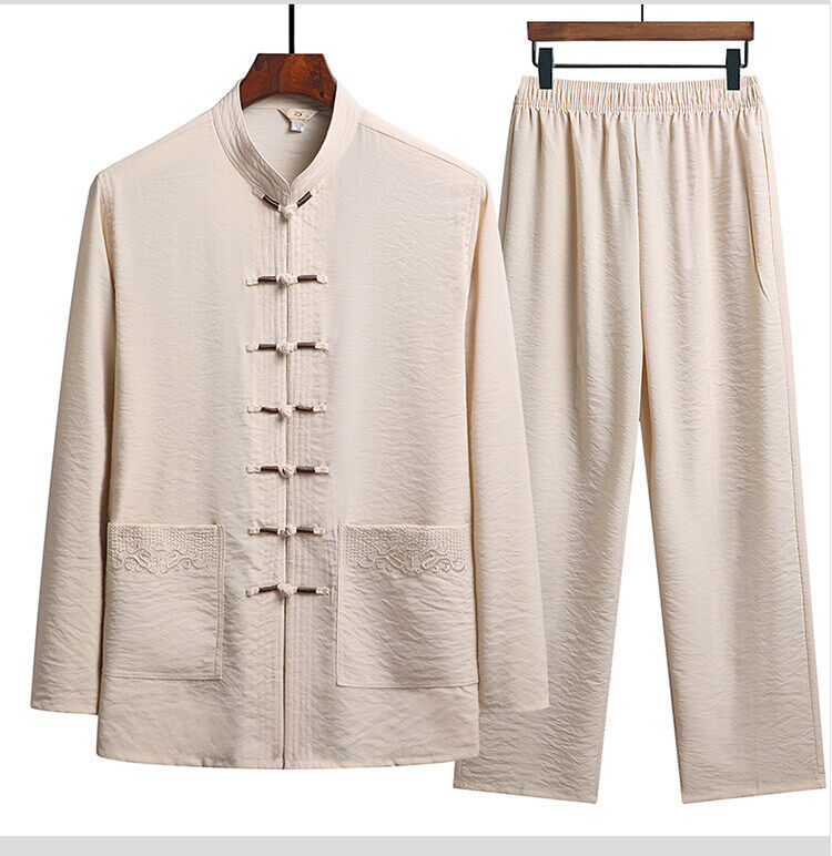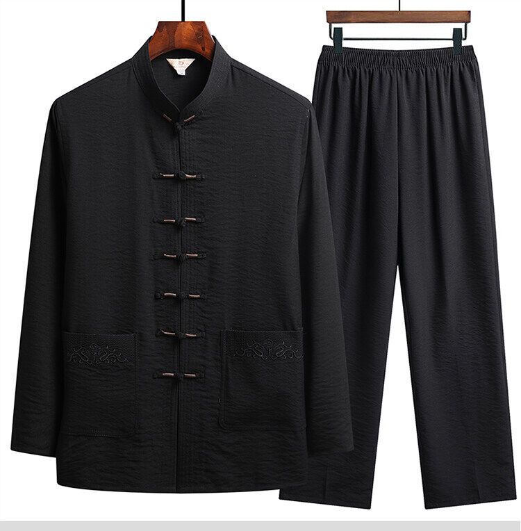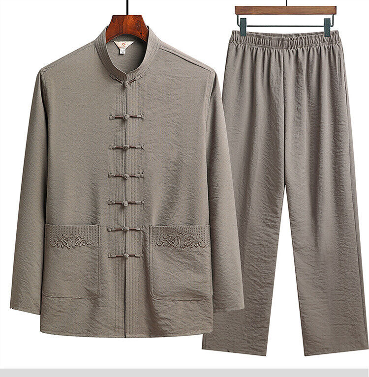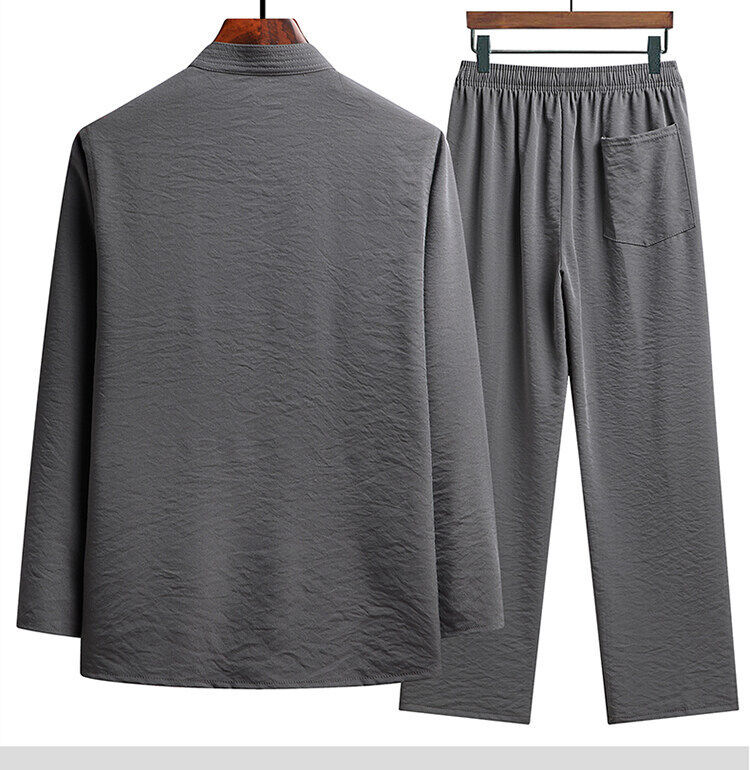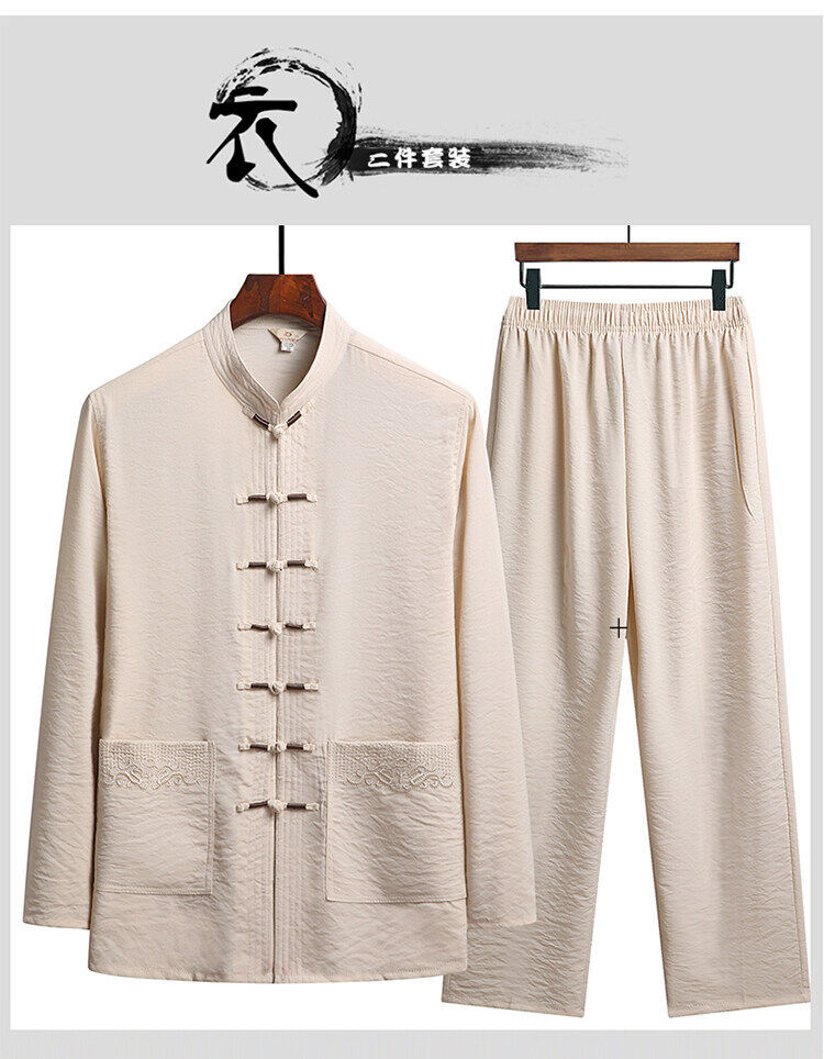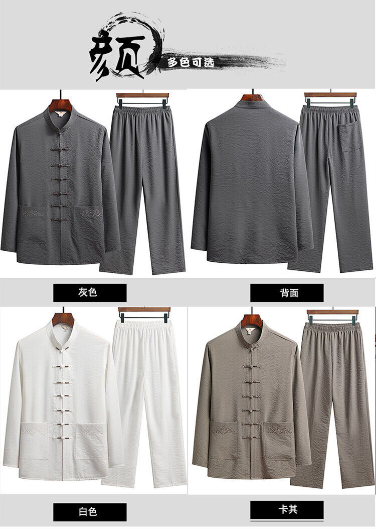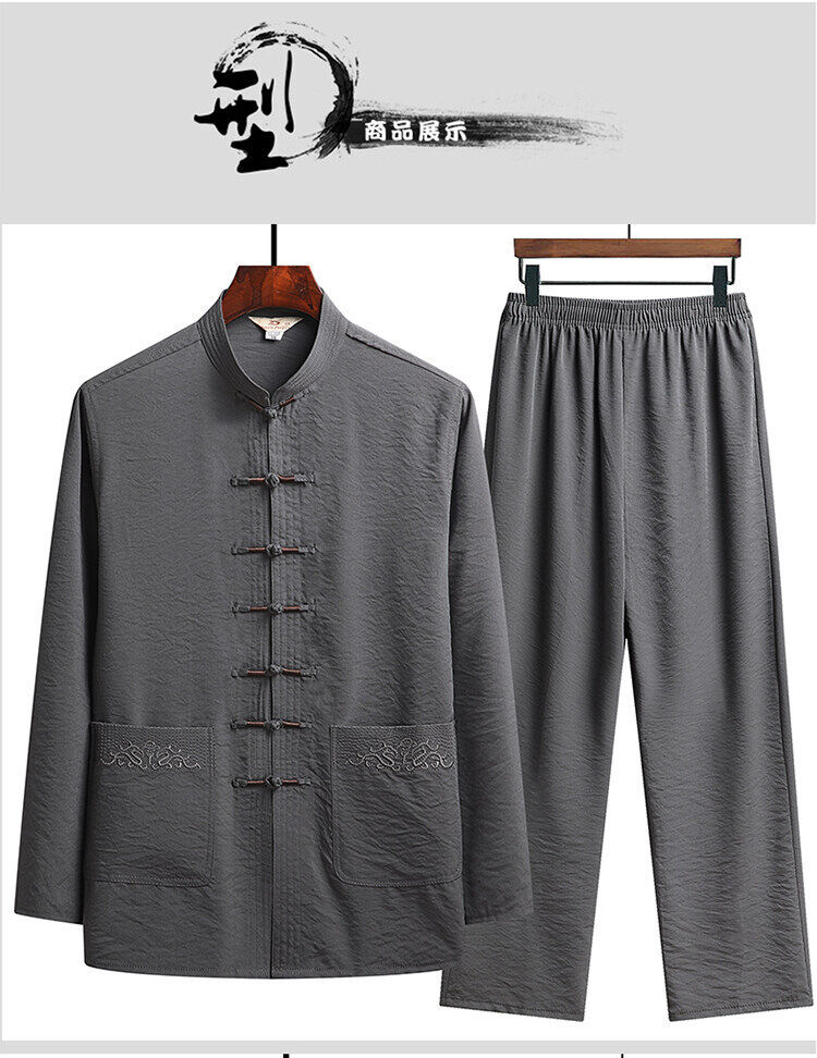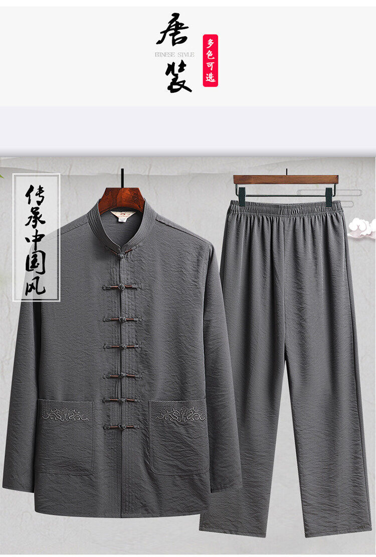 中老年人套装男长袖冰丝套装爸爸春夏装中式太极汉服新中式唐装