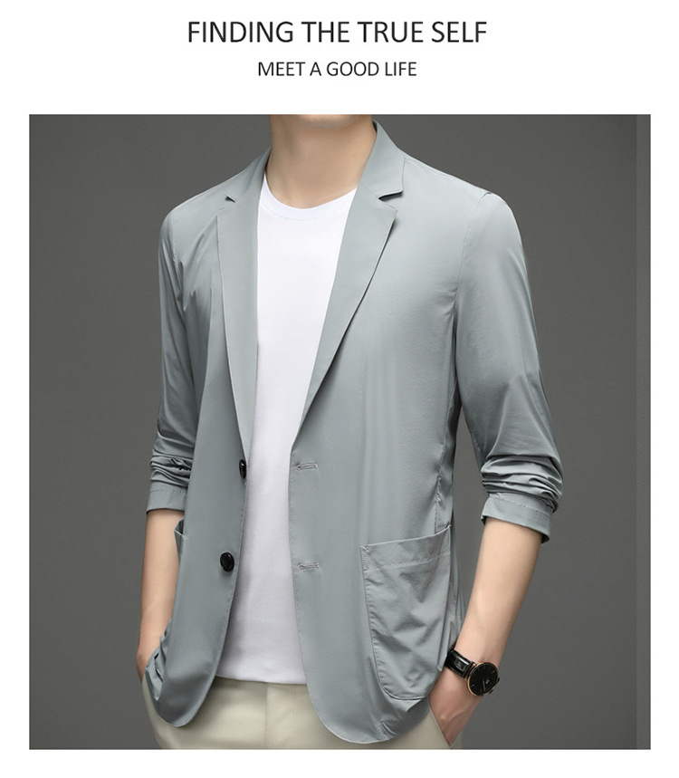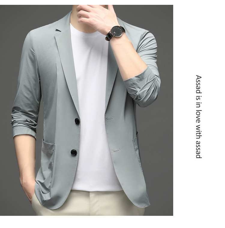 2025新款夏季薄款时尚休闲小西装单西外套防晒衣透气纯色男士西服