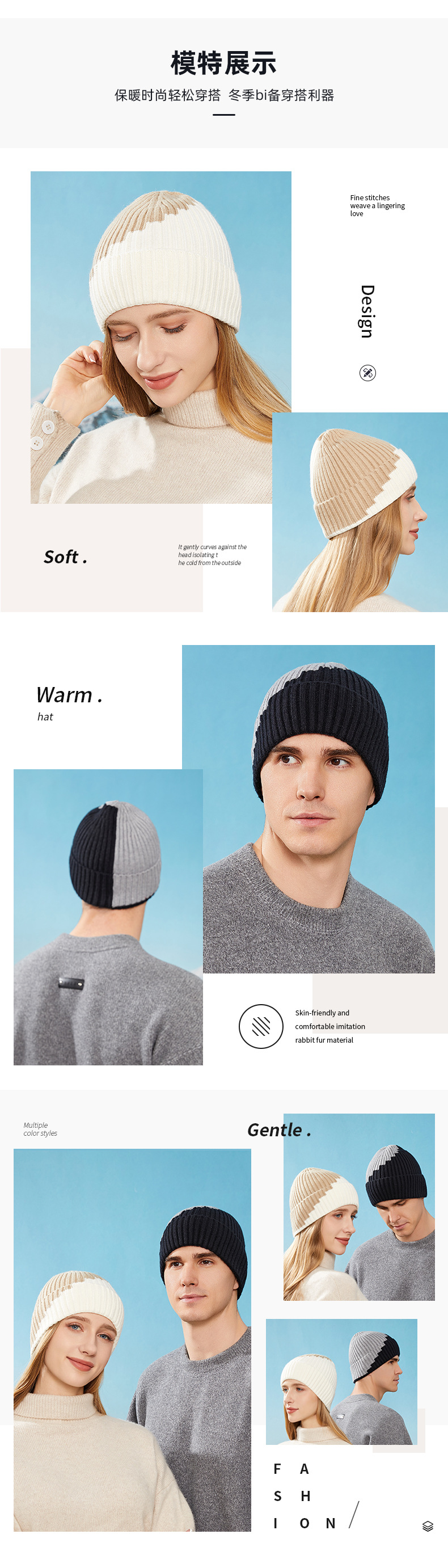 秋冬毛线帽女拼色翻边针织帽子保暖冷帽男潮户外运动情侣护耳帽