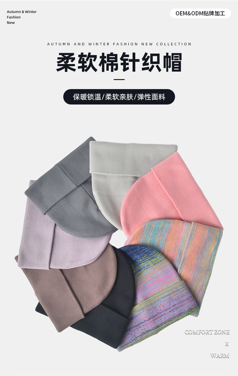 跨境新款100%纯棉针织帽男女韩版秋冬百搭毛线帽包头保暖冷帽潮