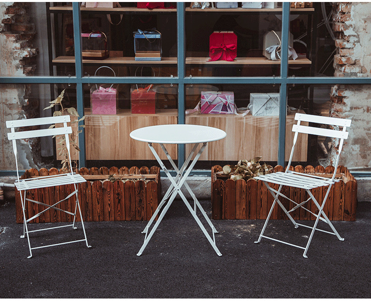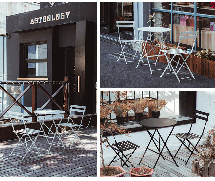 定制折叠铁艺餐桌椅套装简约咖啡厅奶茶店甜品店洽谈桌子户外休闲