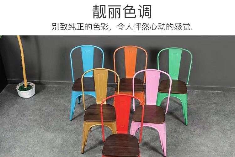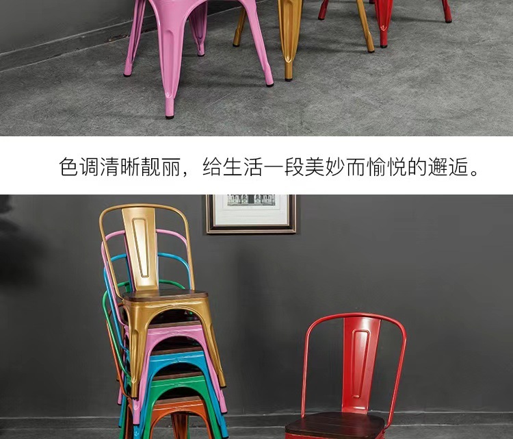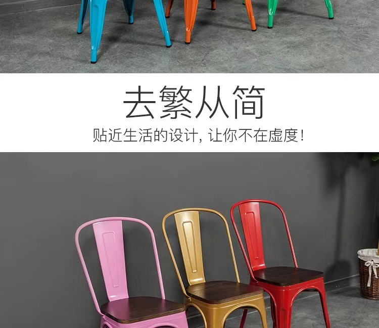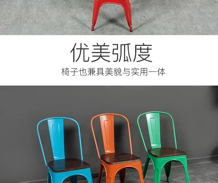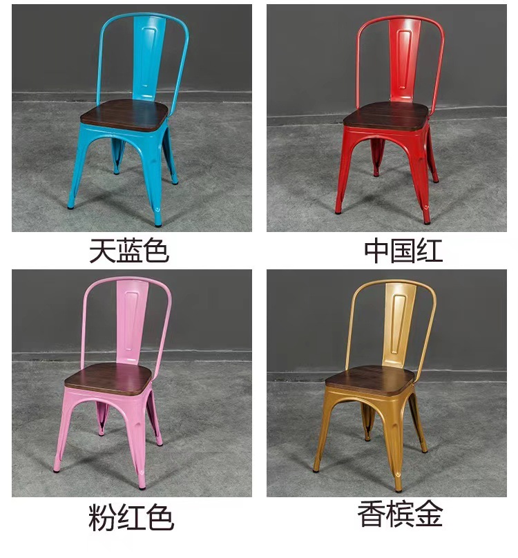 定制铁艺餐桌椅金属靠背椅咖啡餐厅铁皮椅酒吧椅工业椅子做旧工艺