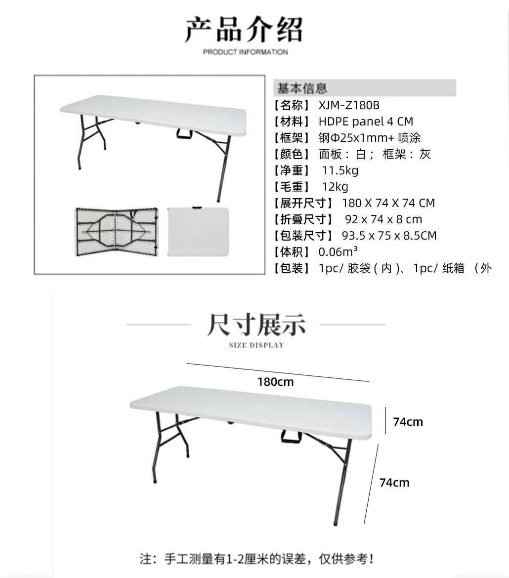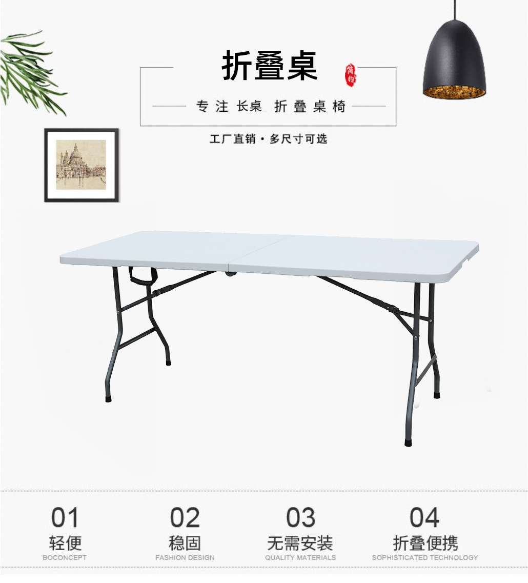 折叠桌摆摊桌 便携式简约户外吃饭桌餐桌椅 6FT吹塑折叠桌 工厂