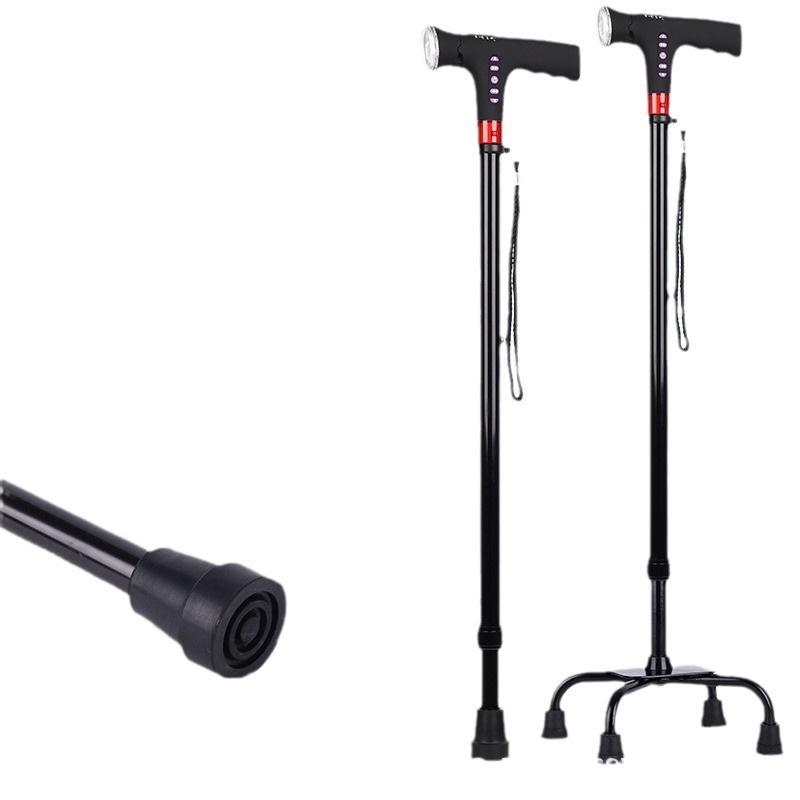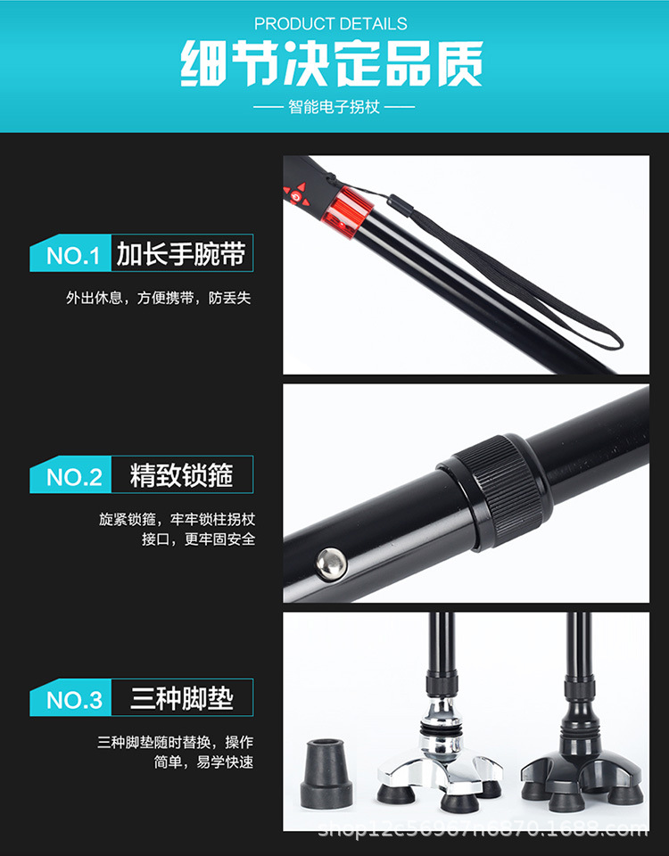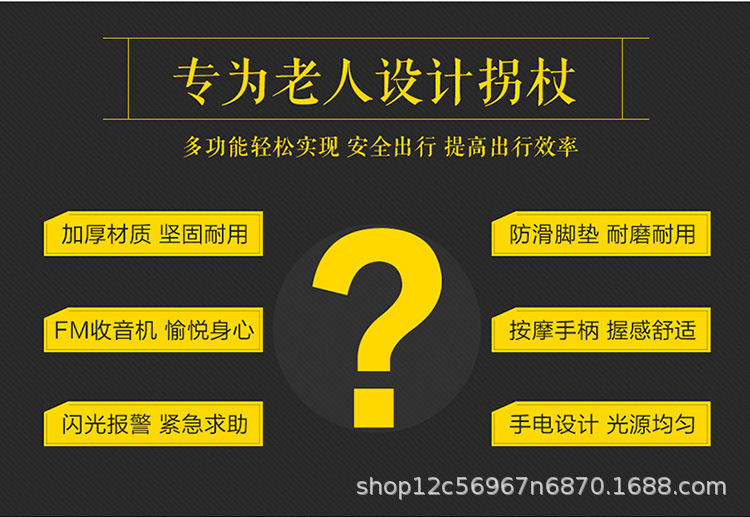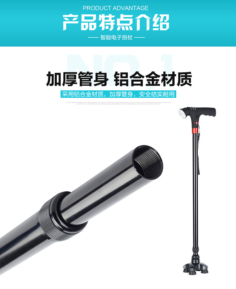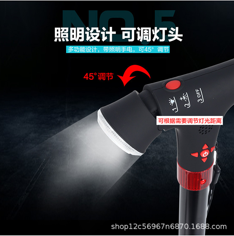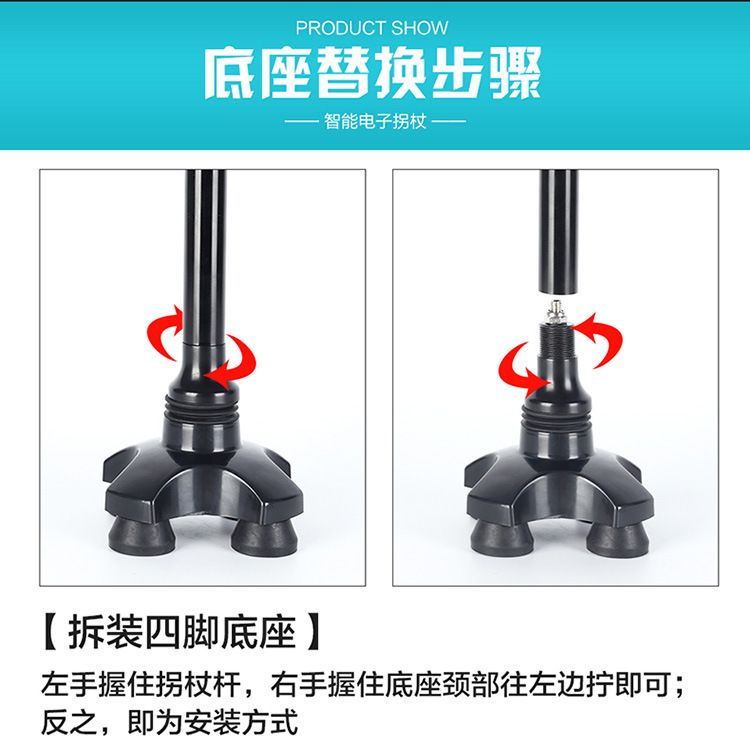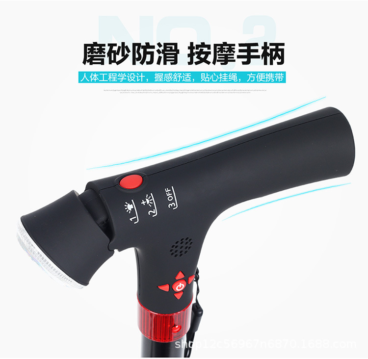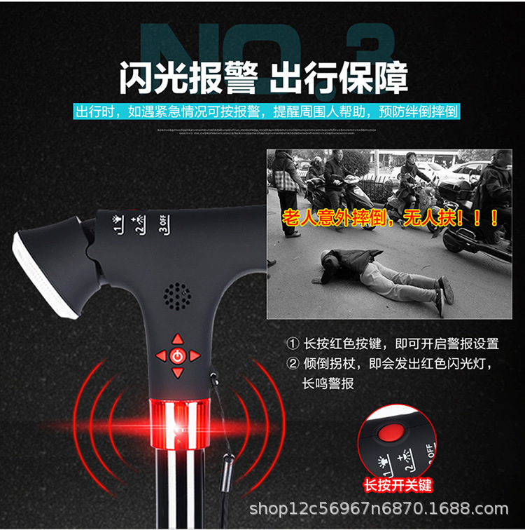 多功能智能手杖老人照明自动报警单脚四脚可更换收音机可调节高度