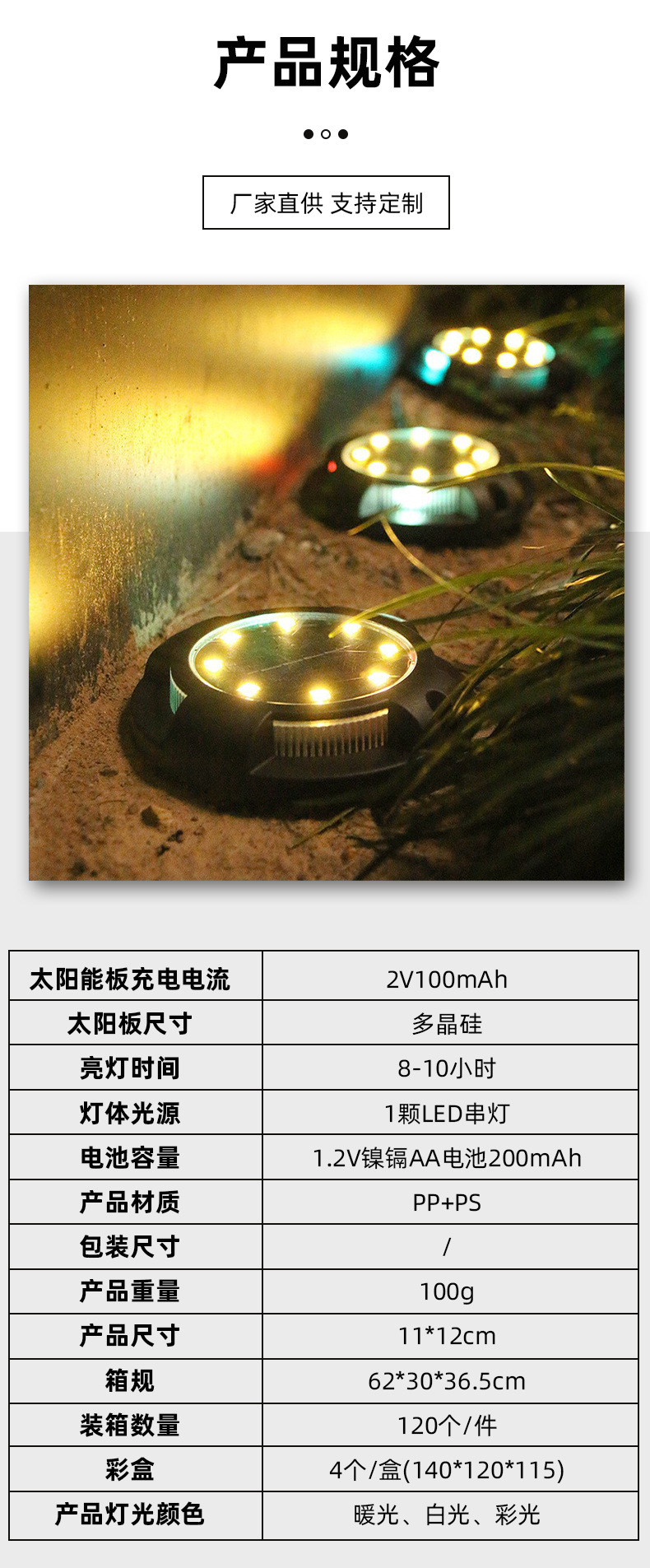 - 规格分类:8*4地埋灯(8LED暖光+4LED暖光)