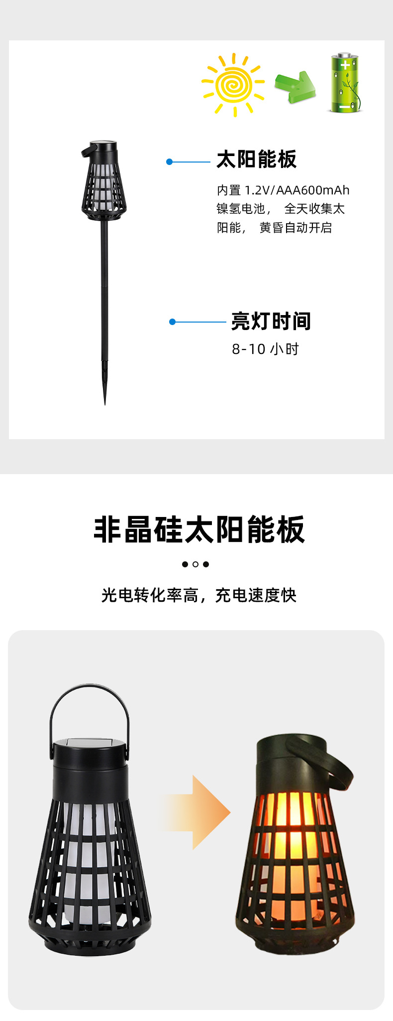 新款热销太阳能手提火焰灯户外氛围灯厂家直销防水太阳能草坪灯