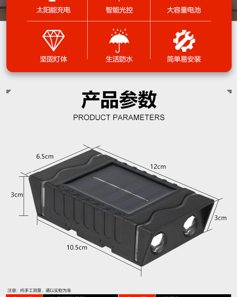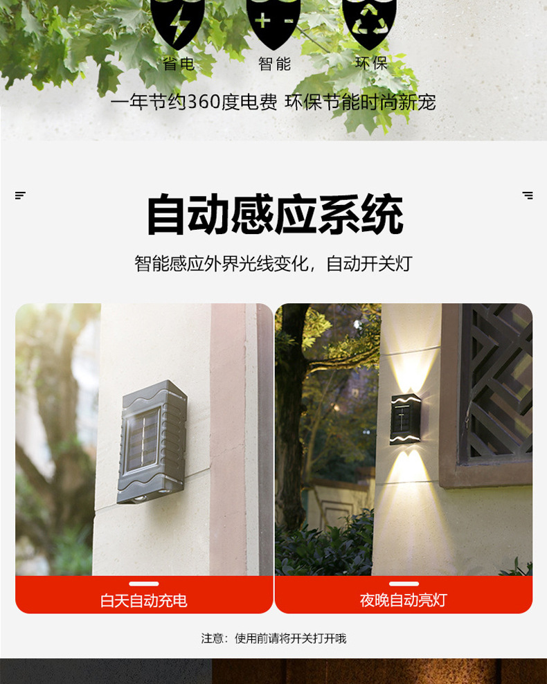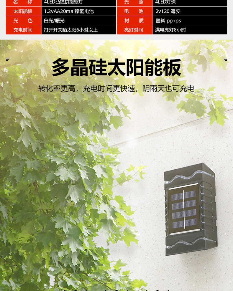 跨境新款太阳能壁灯庭院花园别墅装饰氛围灯防水太阳能凸透镜壁灯