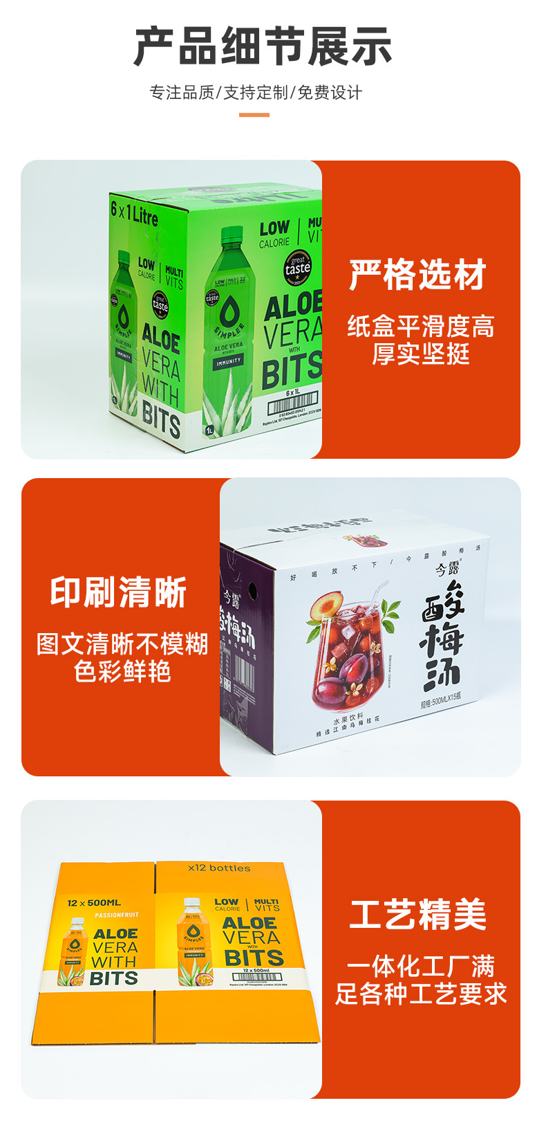跨境热销瓦楞饮料纸盒果汁椰汁酸梅汁包装盒可来图定制