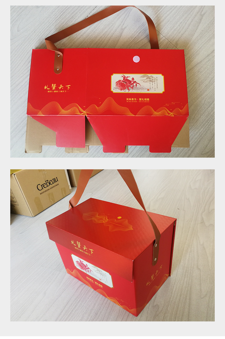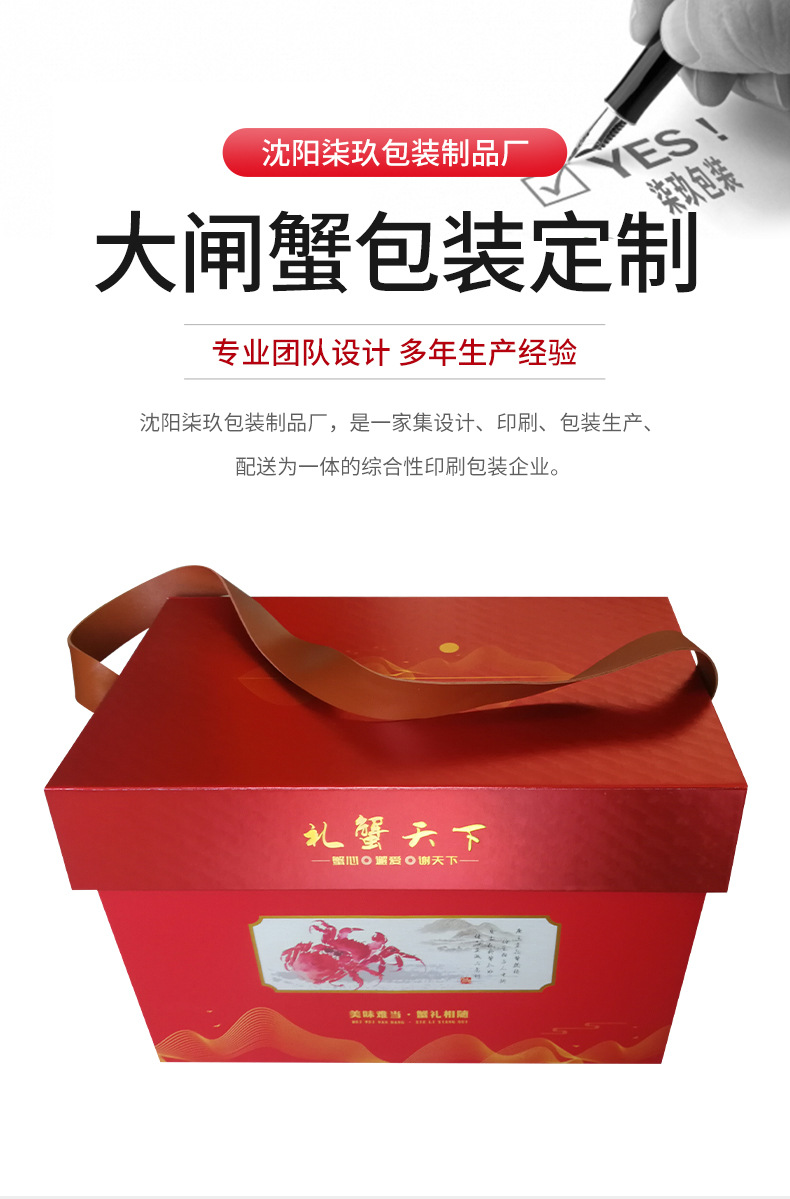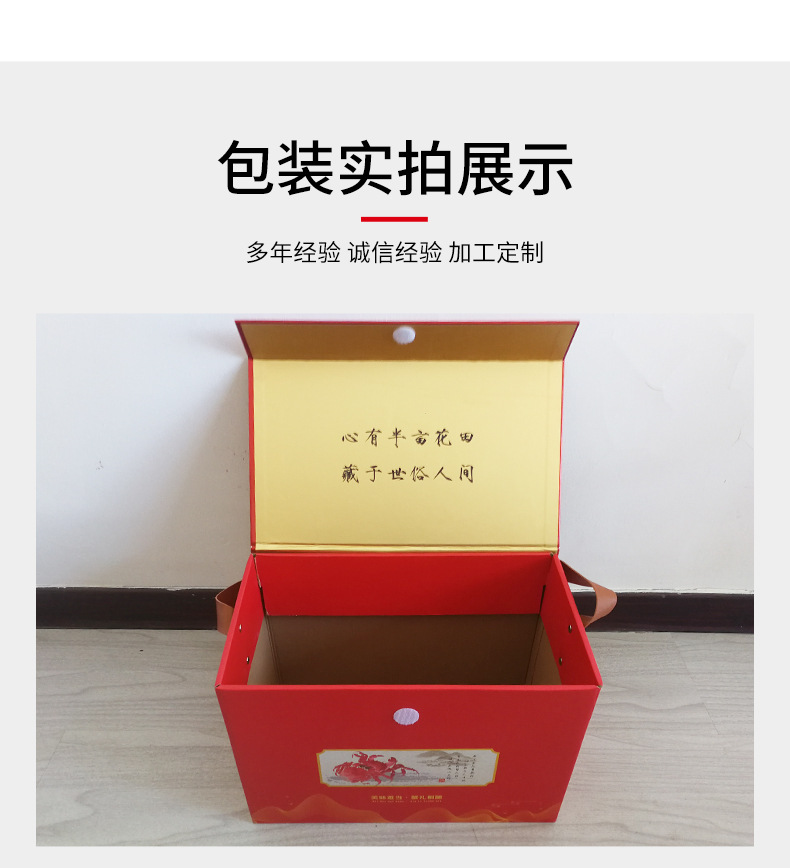 大闸蟹包装礼盒通用海鲜礼盒螃蟹青蟹河蟹翻盖式手拎礼品盒定 制