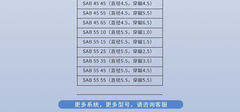- 颜色分类:SAB 55 10(直径5.5,穿龈1.0)