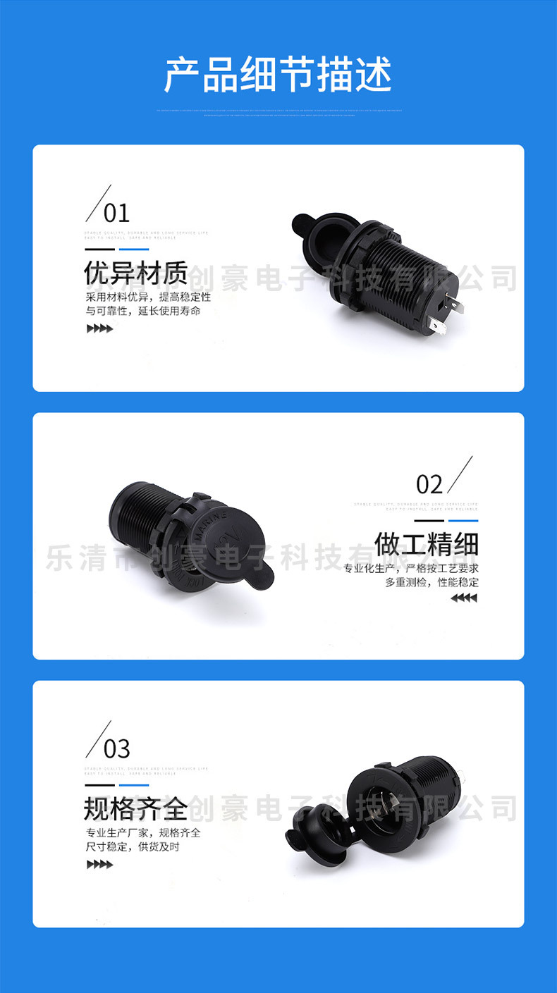 12-24V车载改装插座汽车摩托车电瓶车房车改装点烟器母座批发