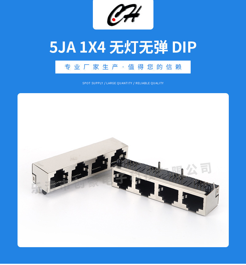 RJ4556网络接口1X4无灯无弹DIP母座网络接口插座网络连接器