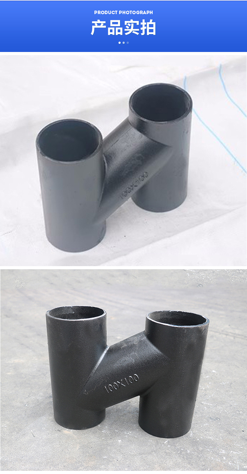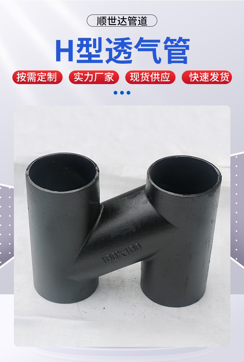 W型柔性排水管件H管 铸铁管H四通接头排水系统铸铁管件