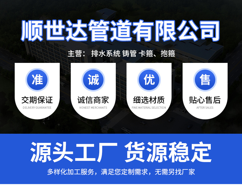 营柔性铸铁排水管球墨铸造供水管A型铸铁管B型铸铁管w铸铁排水管