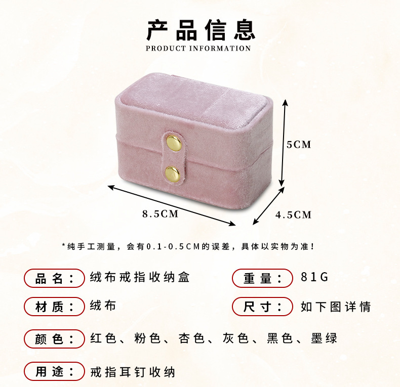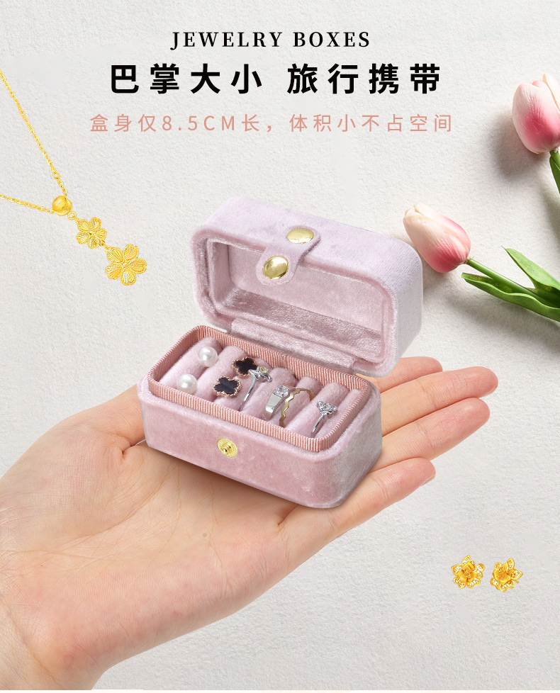 丝绒戒指盒首饰收纳盒旅行便携饰品盒戒指项链珠宝包装盒
