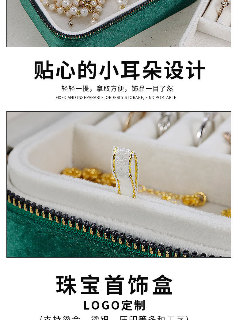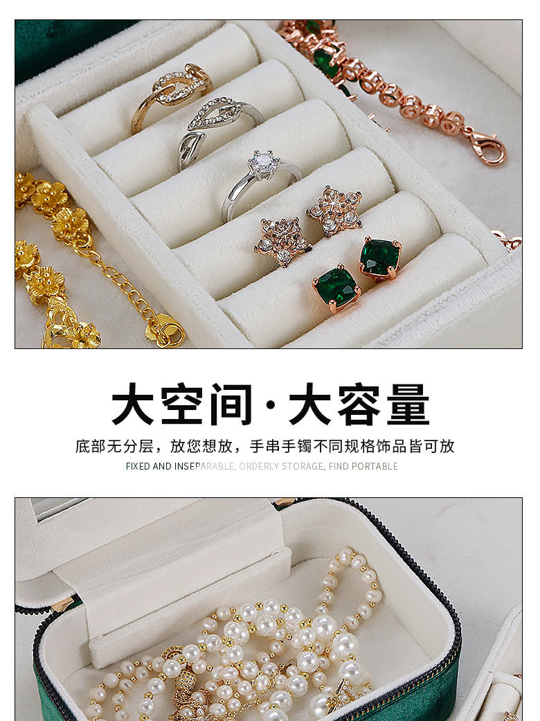 意大利绒首饰盒双层收纳盒便携式珠宝戒指吊坠耳钉盒饰品包装盒