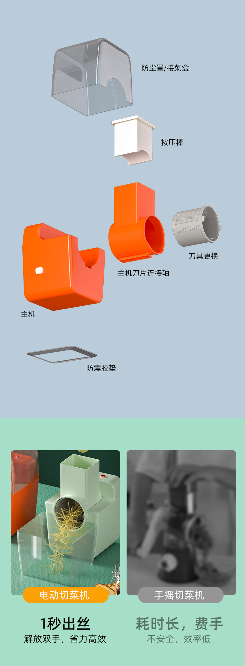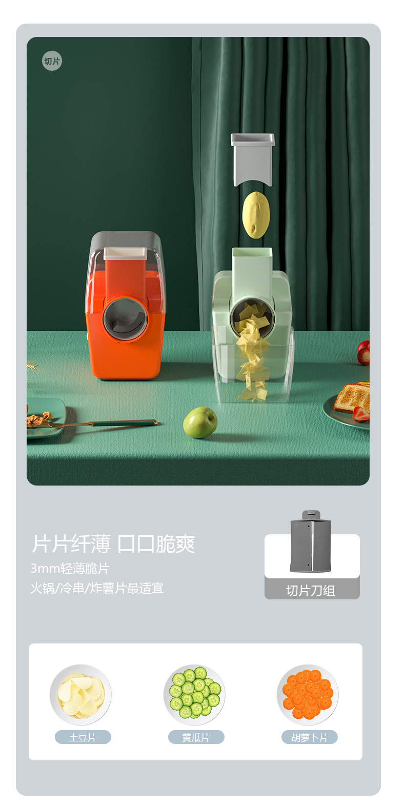 切菜机神器插电切菜机擦丝器厨房切片切丝刨丝神器多功能家橙色