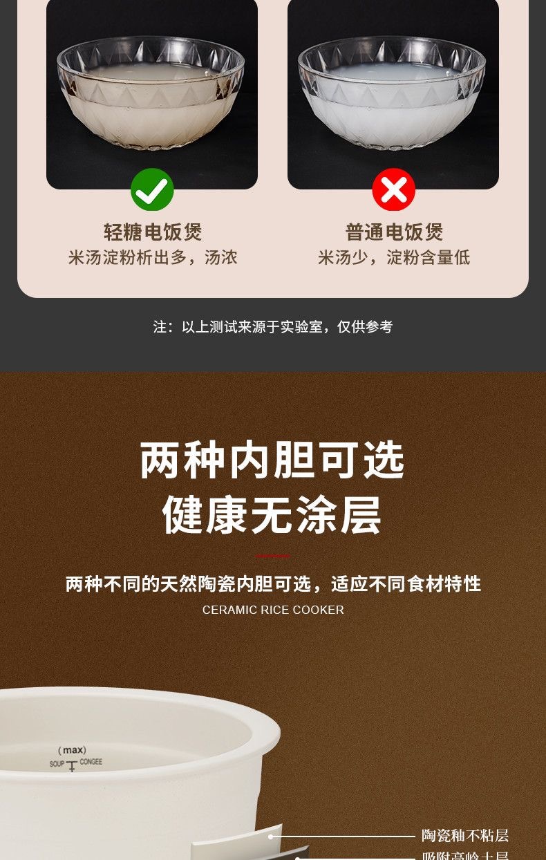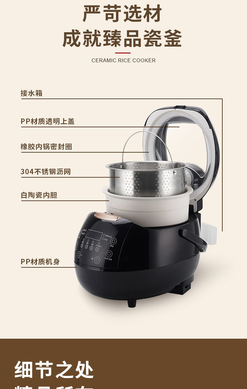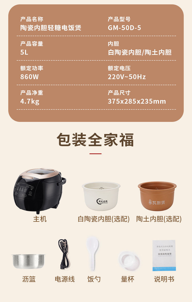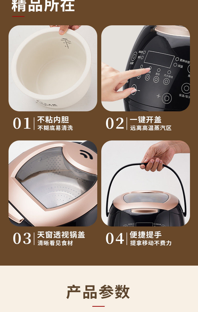 家用多功能瓦胆无涂层智能电饭煲5L瓦胆煲电饭煲营养煲汤煮饭
